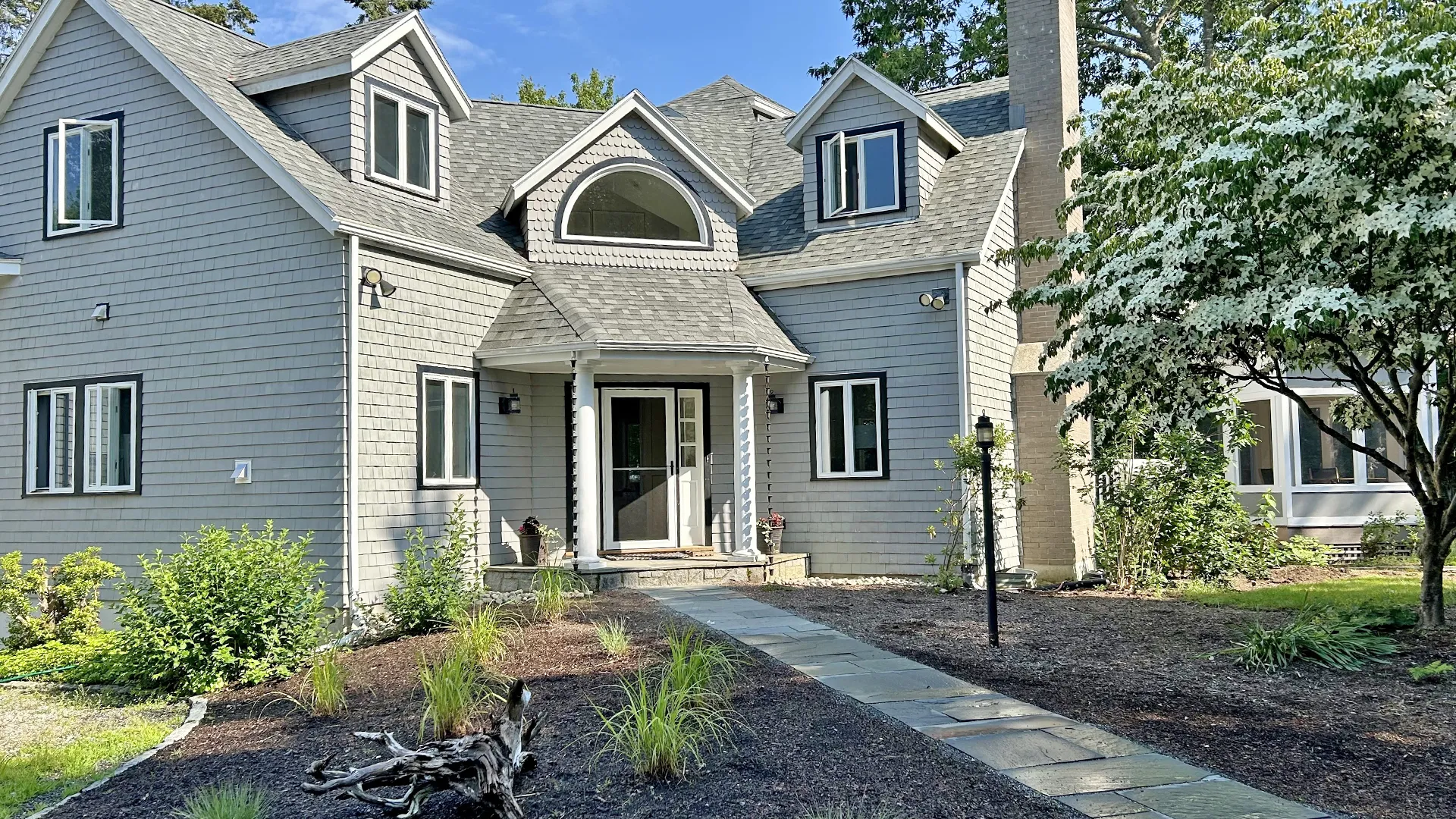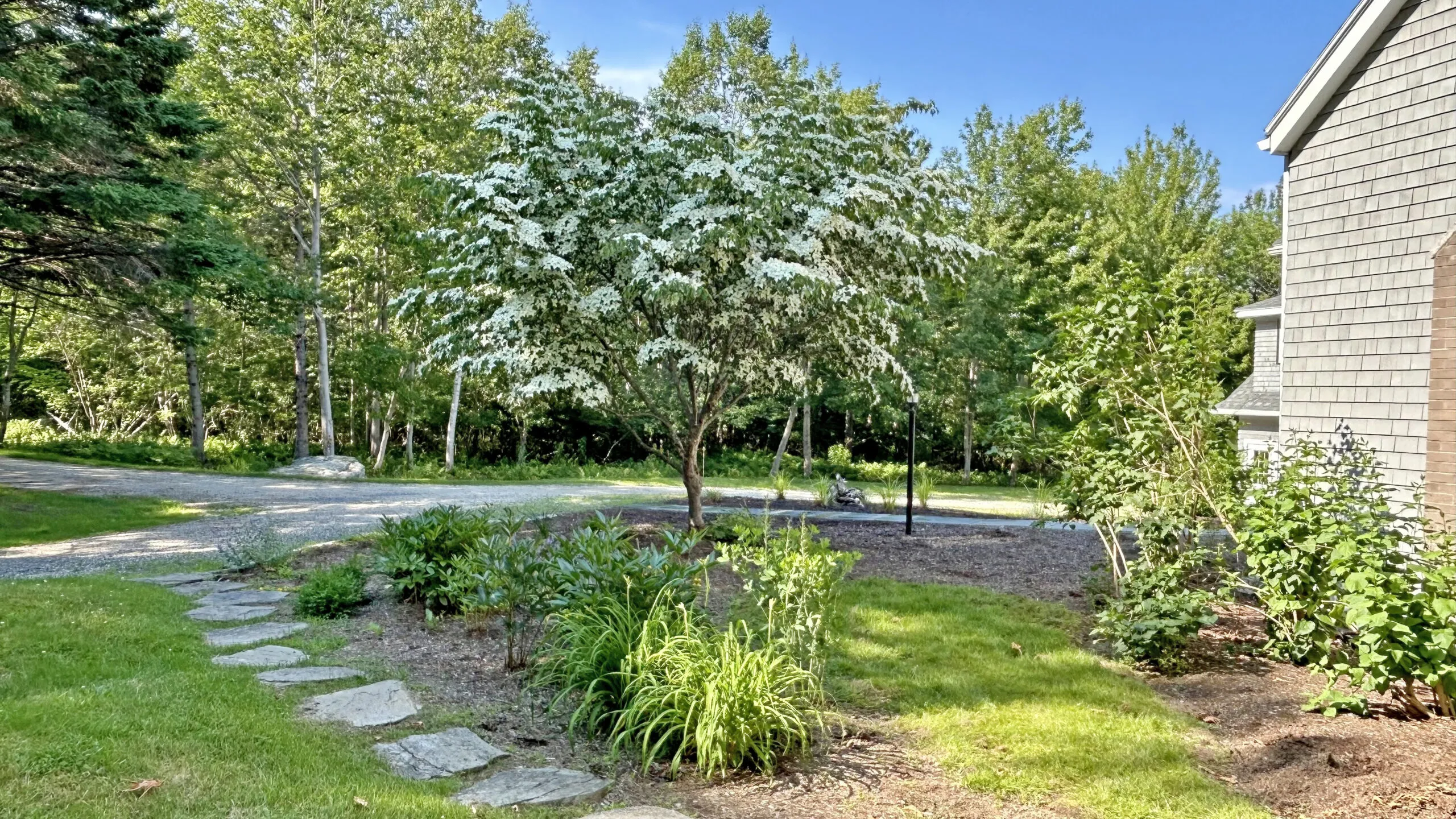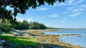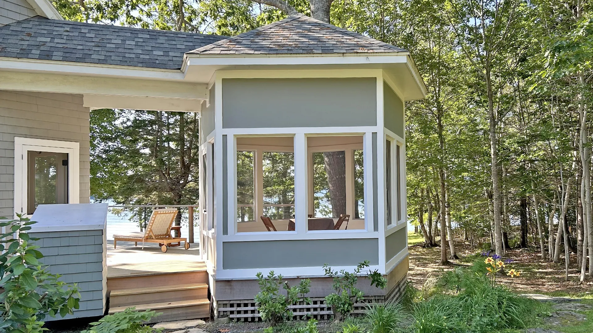 OUTDOOR SPACES: Newly built 60-foot deck and screened gazebo overlooking the grove and shorefront with furnishings perfect for outdoor meals, morning coffee, evening cocktails, and relaxing. Shoreline is great for launching a kayak, stand-up paddle board, canoe (not provided), fishing, clamming, swimming, or just relaxing in one of the four Adirondack chairs and enjoying the view! At low tide, a sandbar leads to Alley Island for exploring or picnic adventures (please be sure to review the weather outlook and consult a tide chart prior to exploring!).