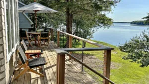 Named for the Irish phrase meaning “happy place,” Áit Shona enjoys wide open living spaces, 300 feet of private shorefront on Mt. Desert Narrows and fabulous outdoor spaces on 10 wooded acres. All rooms have water views, with Sargent and Cadillac Mtns. and Mt. Desert Island in the distance. Newly renovated kitchen, baths, and 60-foot waterside deck further add to an already comfortable spot for up to six people. Picnic, play games, swim, beach comb or just relax in an Adirondack chair along the rocky shore directly in front of this lovely property. When you’re in the mood to trade intense tranquility for bucket list beauty and adventure, you can be at Acadia National Park’s “front door” in minutes. Ideally located equidistant between buzzy Bar Harbor and lower-key Ellsworth in the Downeast National Heritage Area, Áit Shona also offers easy access to nearby restaurants, shops, art galleries, lobster pounds, quaint villages, and more. Whether it’s a family vacation, group rendezvous, or romantic retreat, this very special year-round property (complete with generator) can accommodate you!