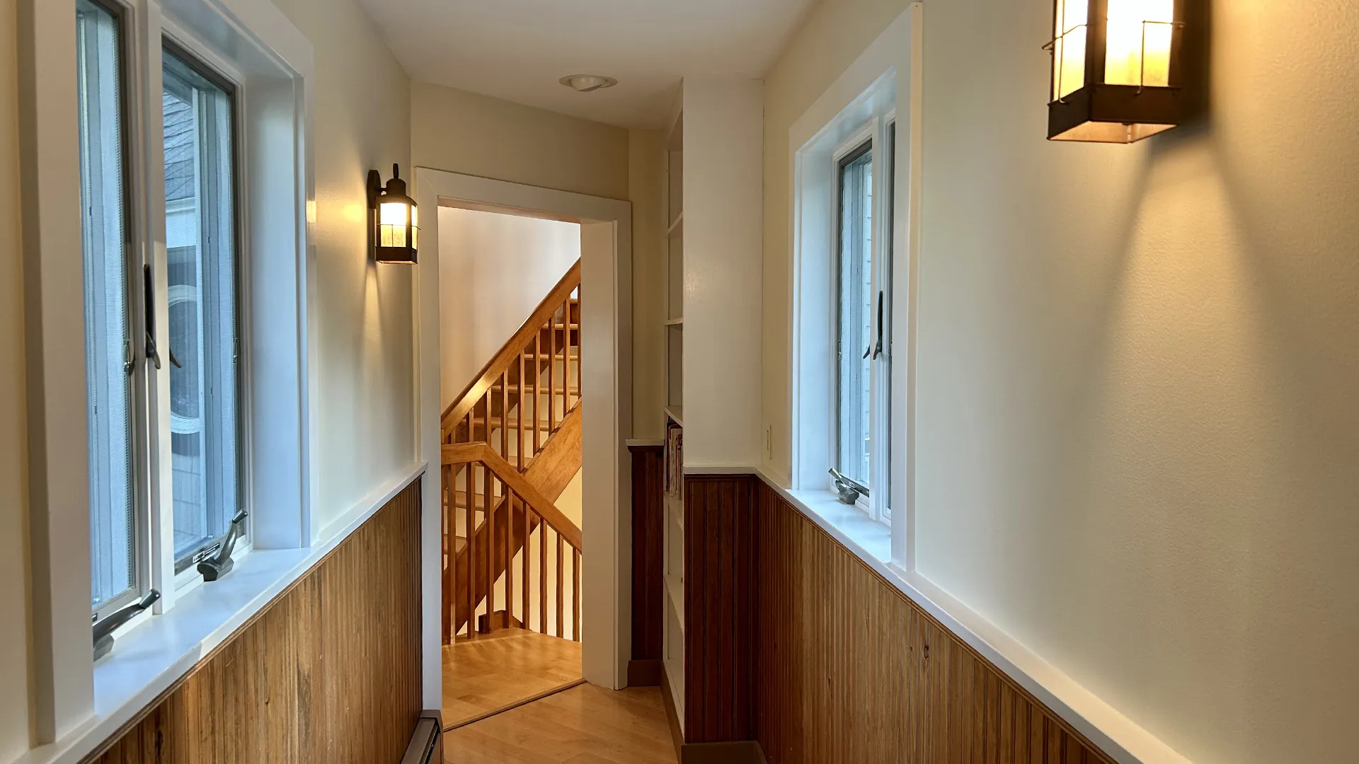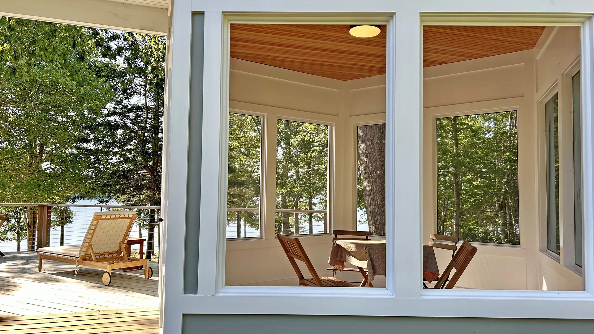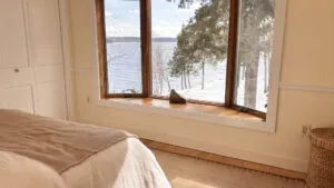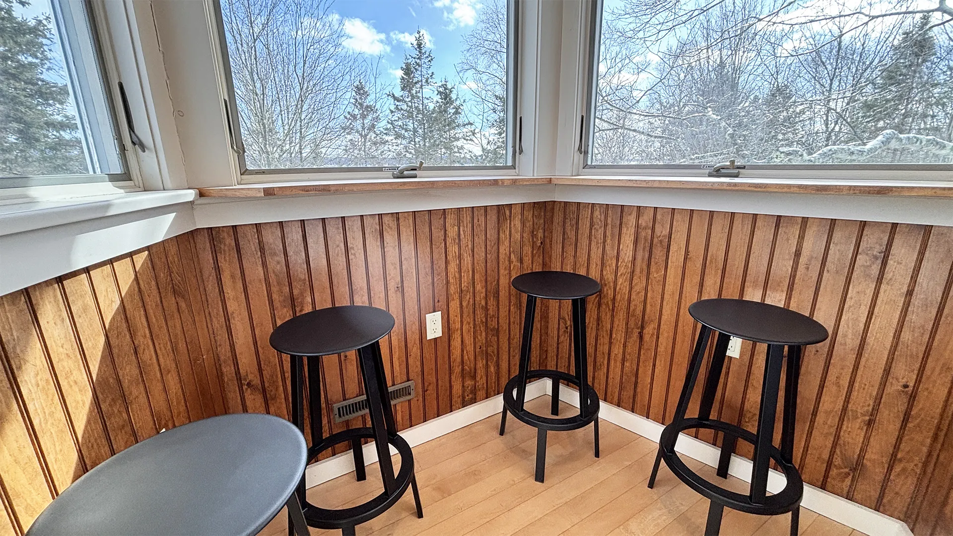 CUPOLA: Another short flight of stairs leads to a small cupola with counter seating and exceptional views across the Narrows towards Mt. Desert Island. Perfect for a morning or evening beverage, bird watching, or enjoying the passing weather!
