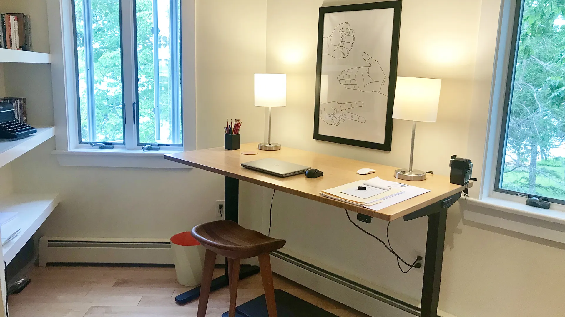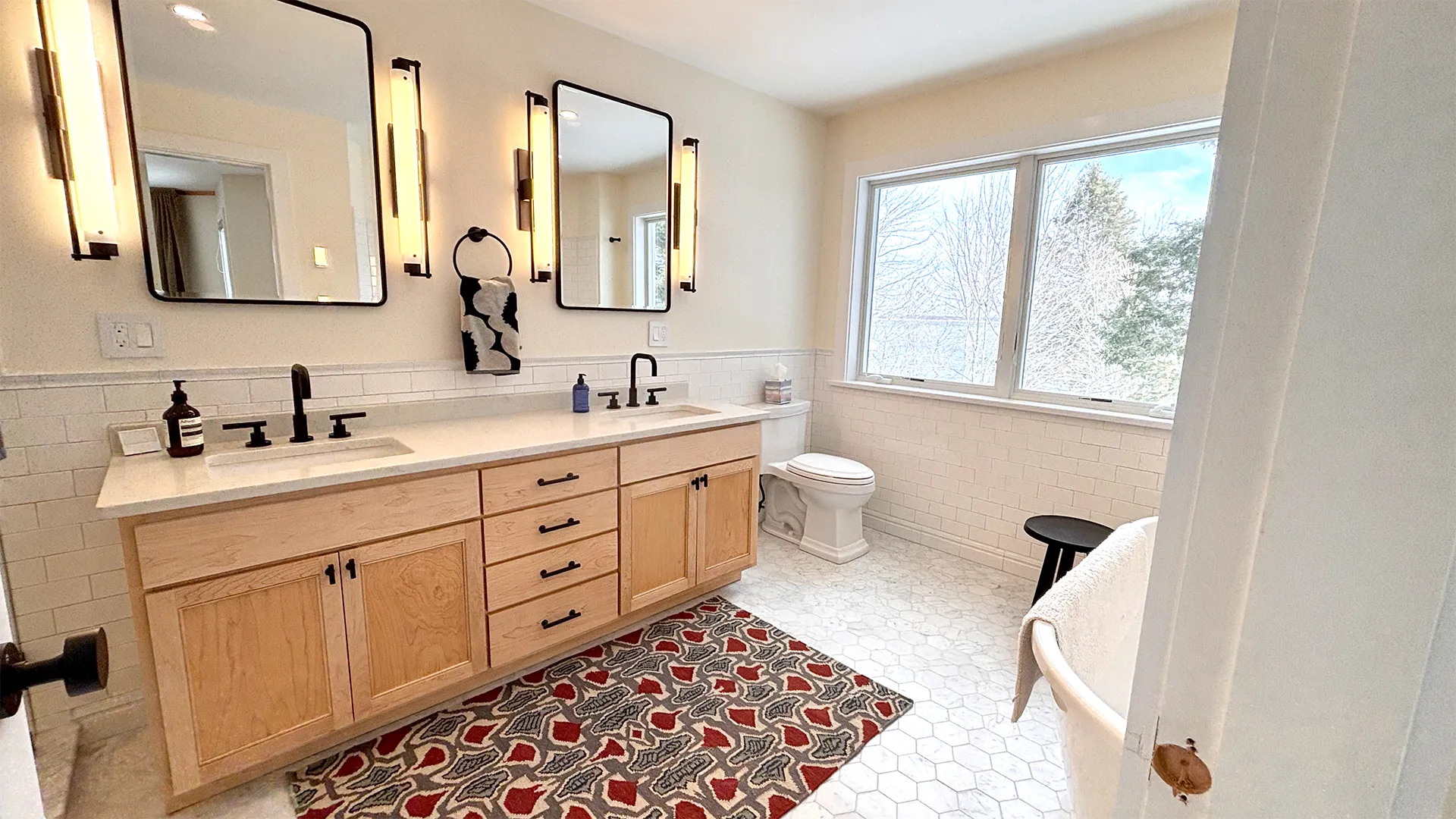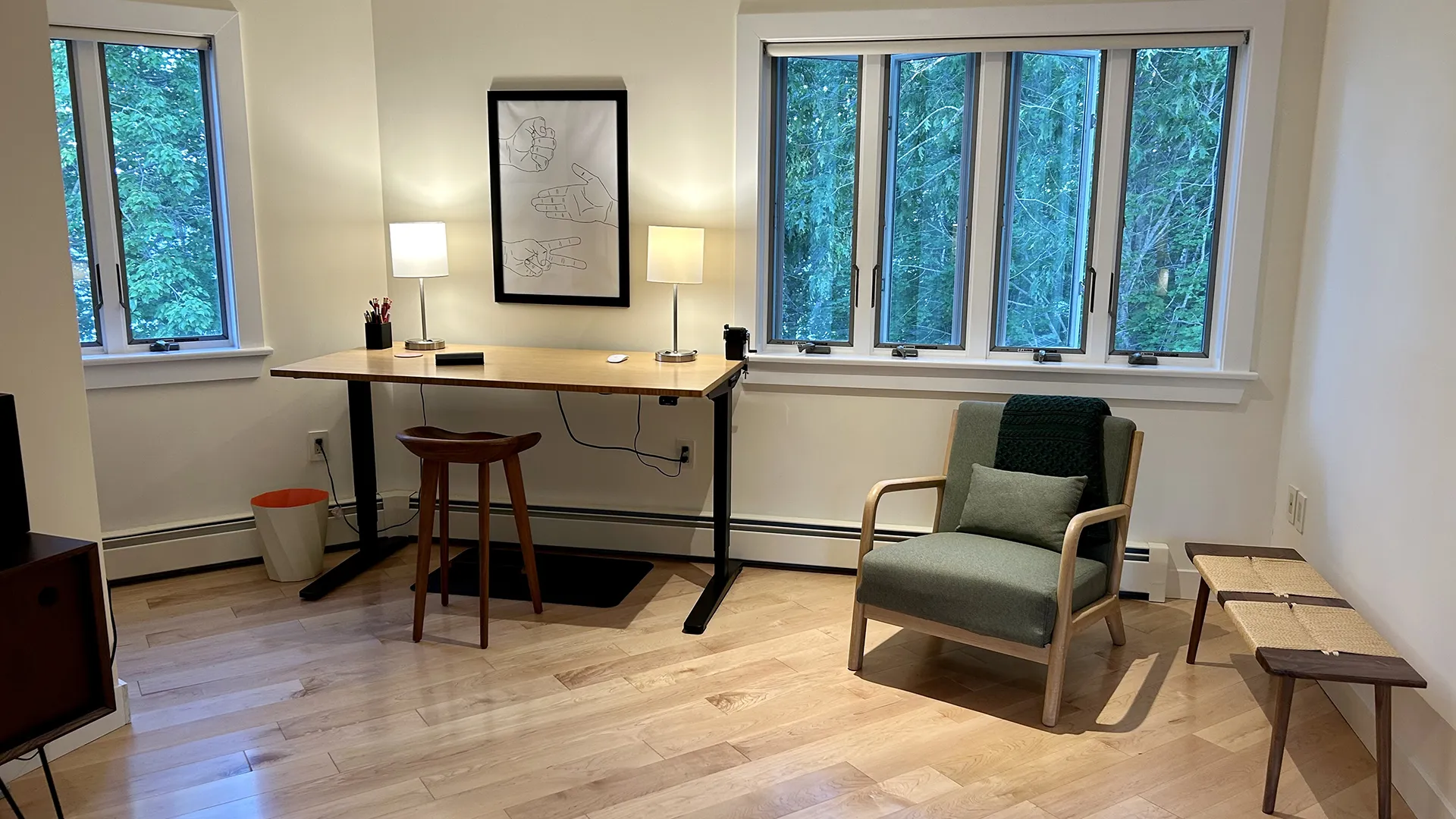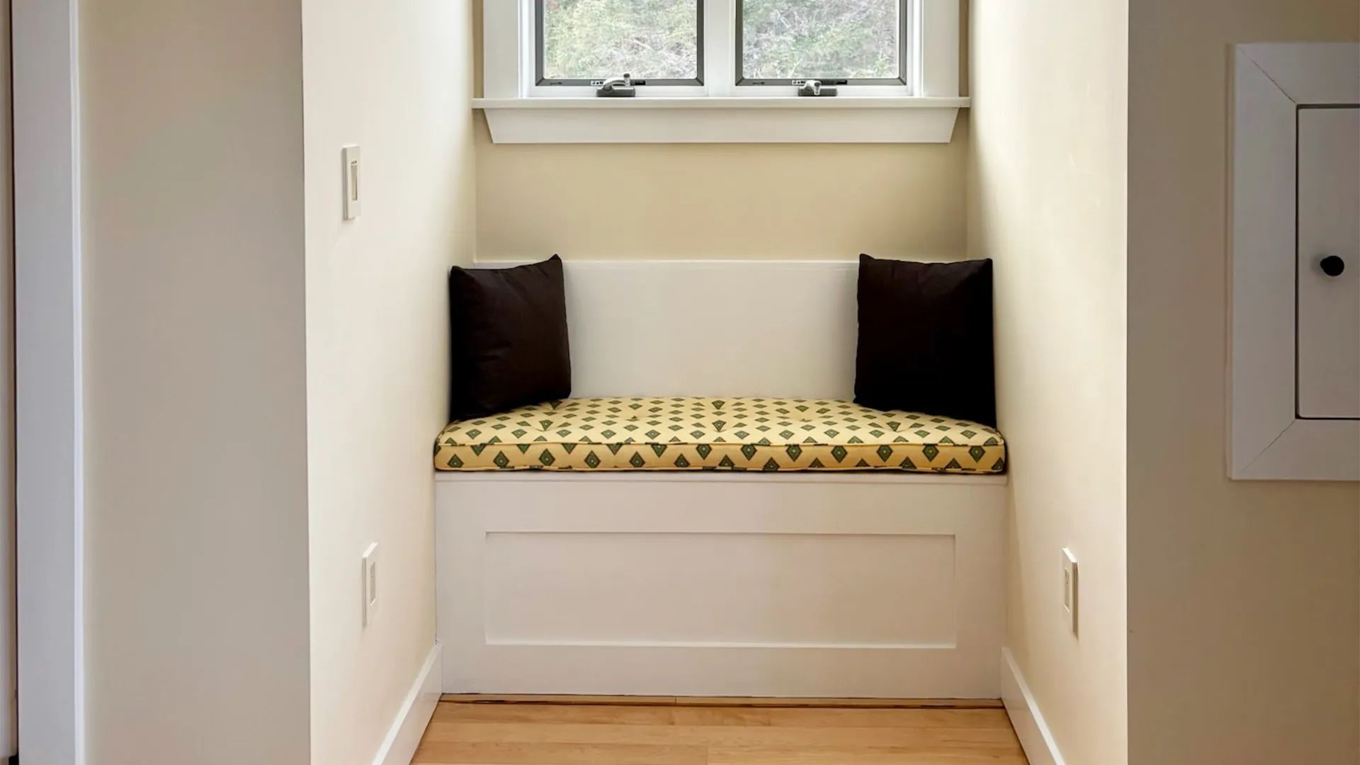 CUPOLA: Another short flight of stairs leads to a small cupola with counter seating and exceptional views across the Narrows towards Mt. Desert Island. Perfect for a morning or evening beverage, bird watching, or enjoying the passing weather!