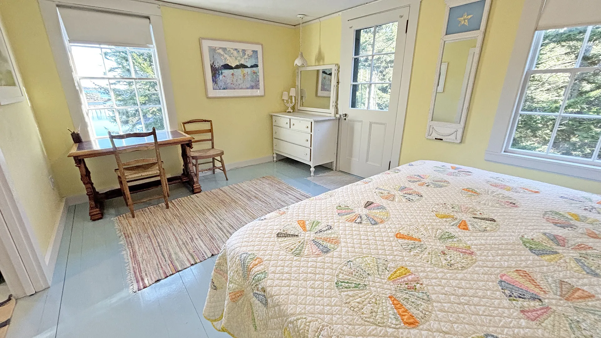GUEST APARTMENT: Potentially available for an additional fee, this attached guest apartment adds 2 bedrooms and 2 bathrooms for an additional four people. Compact but efficient, the apartment enjoys a private entrance and private side deck overlooking Gilpatrick Cove. Note that apartment may or may not be occupied by the owners or other tenants during your stay.