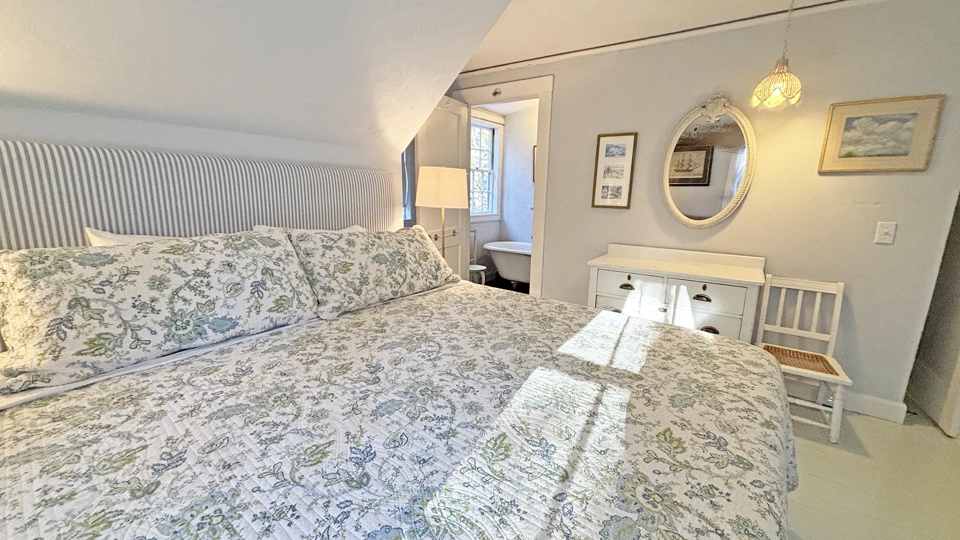 THIRD FLOOR: Large Bedroom with King bed and water views. Private Full Bath with tub (not renovated). Children’s Bedroom with Single bed and water views. Full Bath with combined tub and shower. Children’s Bedroom with Twins and water views.