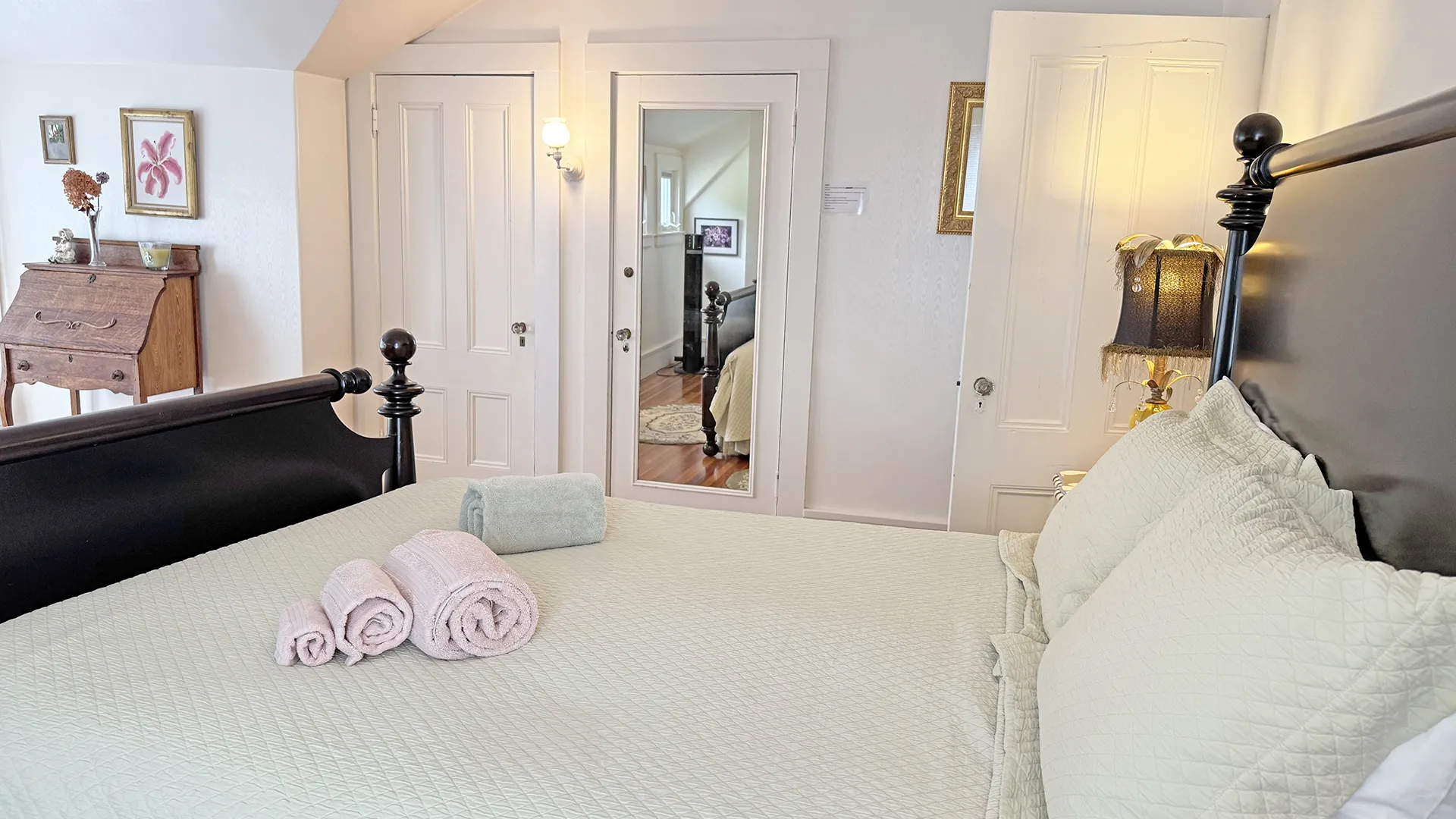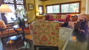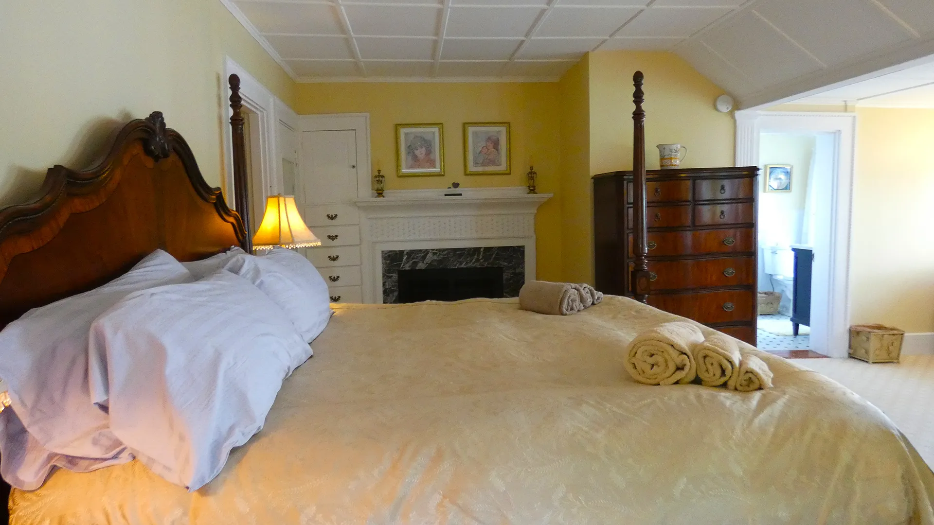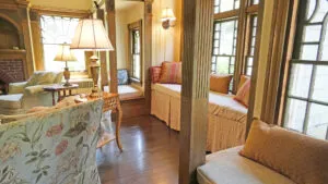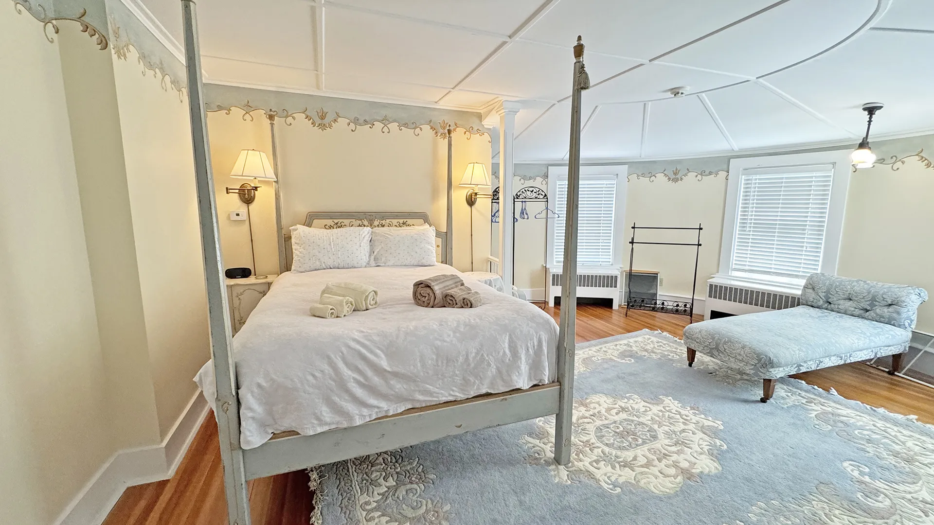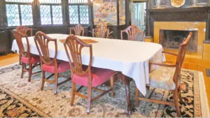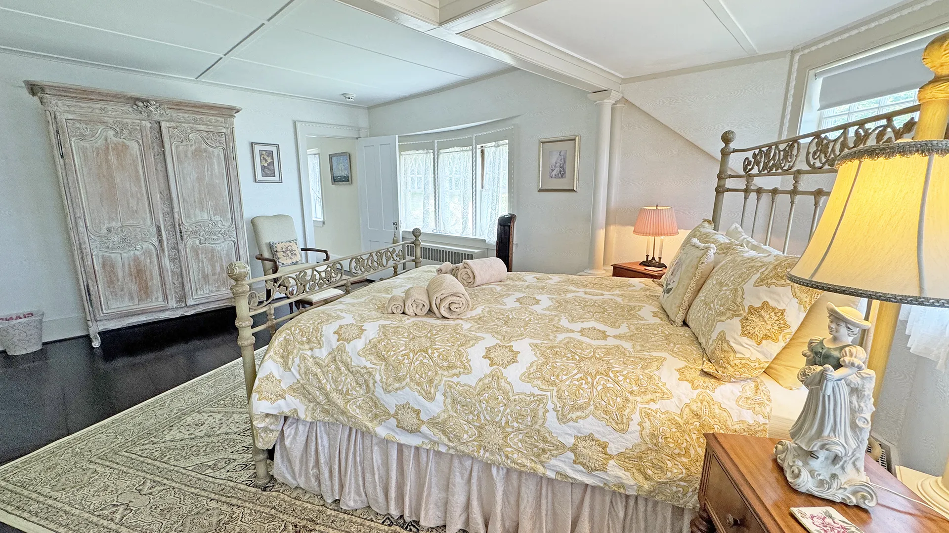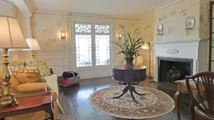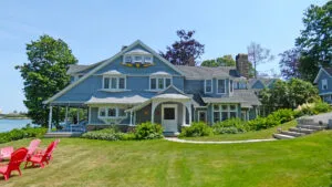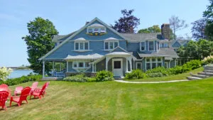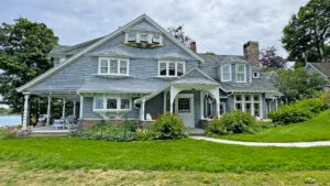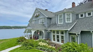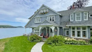 Located in the Eden Street Historic District of Bar Harbor and listed on the National Register of Historic Places, this French-style home with 136 feet of private shorefront and ever-changing views of Frenchman’s Bay, Bar Harbor, and the Porcupine Islands, offers its guests timeless romance in a private oceanfront setting. And it’s all within walking or biking distance to Acadia National Park and the village of Bar Harbor! Bagatelle was designed and built in 1887 by famed architect, Arthur Rotch, who designed twenty Bar Harbor “cottages” between 1883 and 1890. Today, it’s one of only seven Arthur Rotch cottages that survived the great fire of 1947. Lovingly restored by expert craftsmen, rich interiors express the well-measured exuberance of Victorian residential architecture. With lavish moldings, fine wainscoting, and elaborate hand-carved mantels, the period’s desire for invention and variety are evident.