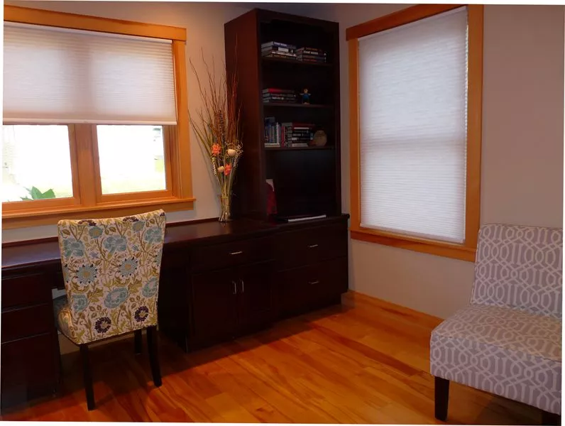 FIRST FLOOR: Entry way leads to combined Living and Kitchen areas with cathedral ceiling, showcase fireplace. Lovely green granite counter tops grace this updated and well-equipped kitchen with counter seating for four. Dining area overlooking back yard features dining table that seats eight comfortably and door to deck. Large pantry area with second refrigerator, half Bath with large laundry area and washer/dryer. Office space with built in his/hers desks. Just beyond the living area, Primary Bedroom with King bed, plenty of closet space, and large Private Bath with Jacuzzi tub, separate glass shower, and double vanity. Check out the TV overlooking tub!