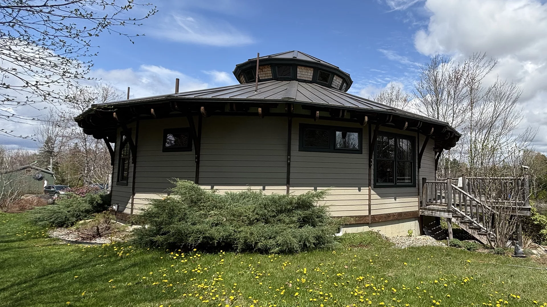 Hidden in an open meadow with gardens and naturally landscaped areas is this gem of a find! This unique, year-round eighteen sided home with many custom features is a great spot for your Acadia stay. We love the honey-glow of the custom cabinetry, intricate rafter-work in the ceiling and trim, and the cheerful light-filled spaces! With no visible neighbors, you can truly escape from it all, but don’t worry, you are still within a short drive to Acadia National Park entrances and major village centers of Bar Harbor and Southwest Harbor, not to mention the vibrant downtown center of Ellsworth with its eateries and shops!