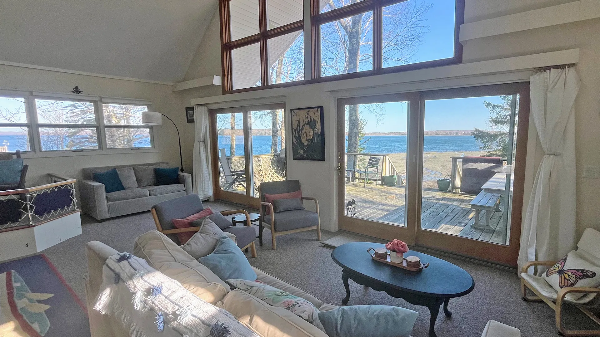 OUTDOOR SPACES: Waterside deck with table and chairs and chaise lounge. Additional deck near entry, also with seating and a gas grill. Beachside hammock for afternoon naps, and extra large beachside picnic table for outdoor gatherings. Gently sloping shoreline to the water with mixed sand, shale, ledge, and gravel provides easy access for exploring, swimming, or launching a kayak (kayaks not provided). Sorry, no fires allowed on the beach.