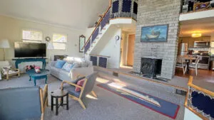 The loft and step down living room gives the house a ships feel. We affectionately nicknamed the basement bathroom ‘Thunder Hole’. 1.5 baths worked out just fine. Everything was well stocked and organized …thought was put into the renters needs. We’ve used the Knowles Company for almost fifteen years- tried another option one year and quickly returned. They are professional, pleasant and know their houses. They get that this is your special week away and they want to make it great. Thank you for sharing this tucked away treasure only a quick drive to Bar Harbor.