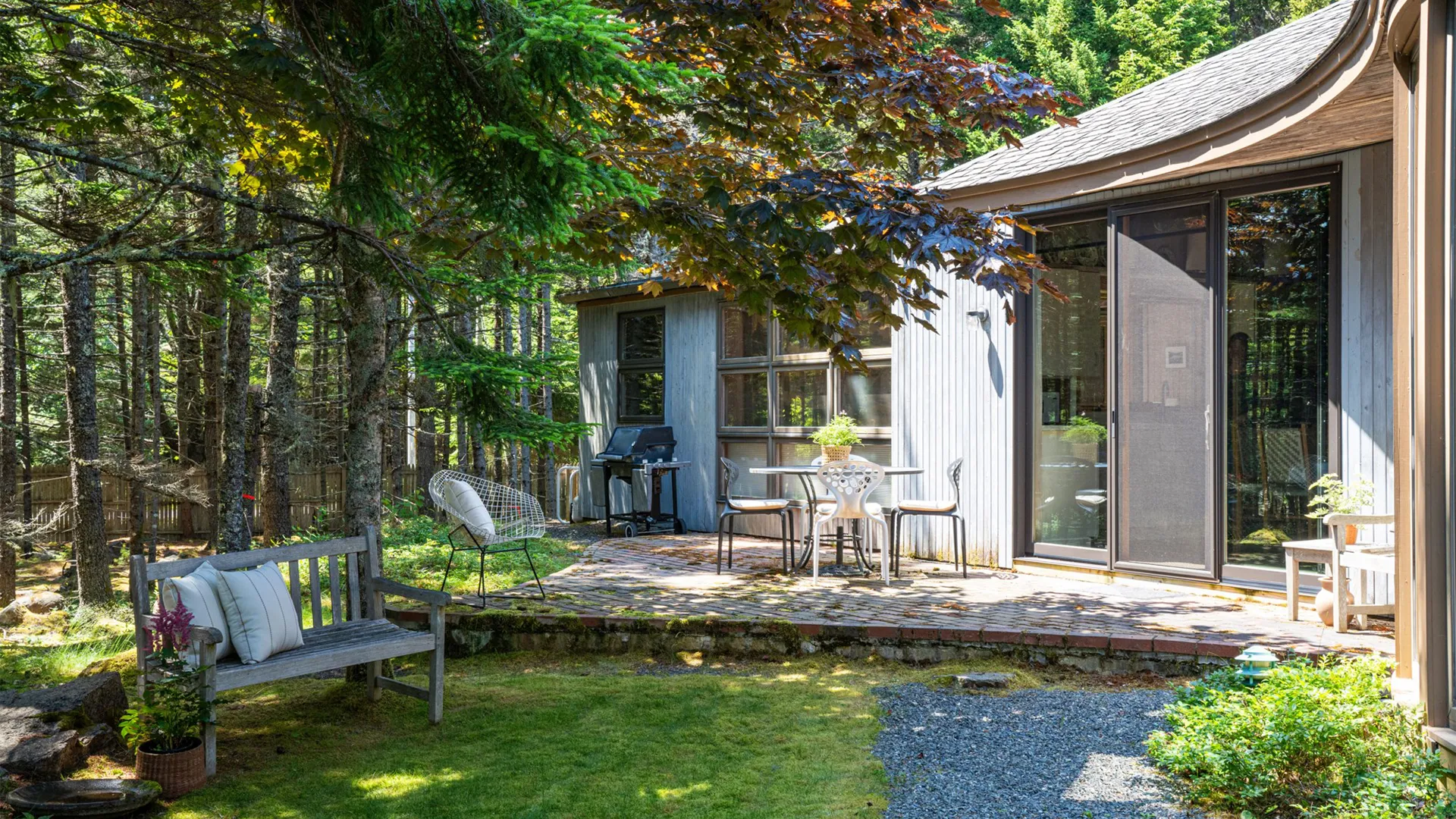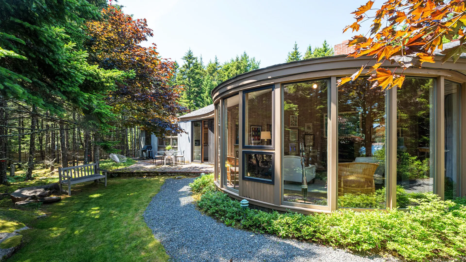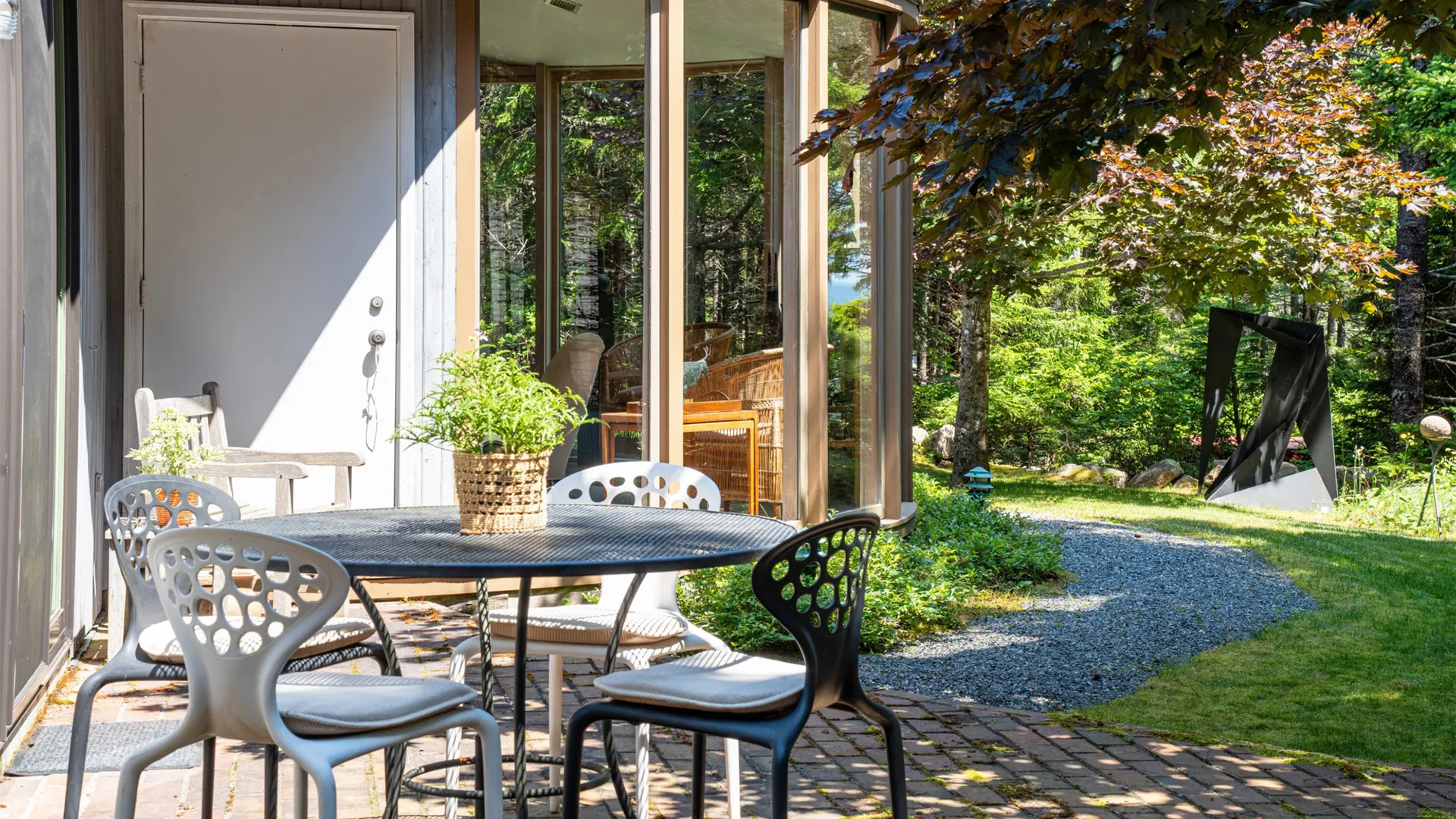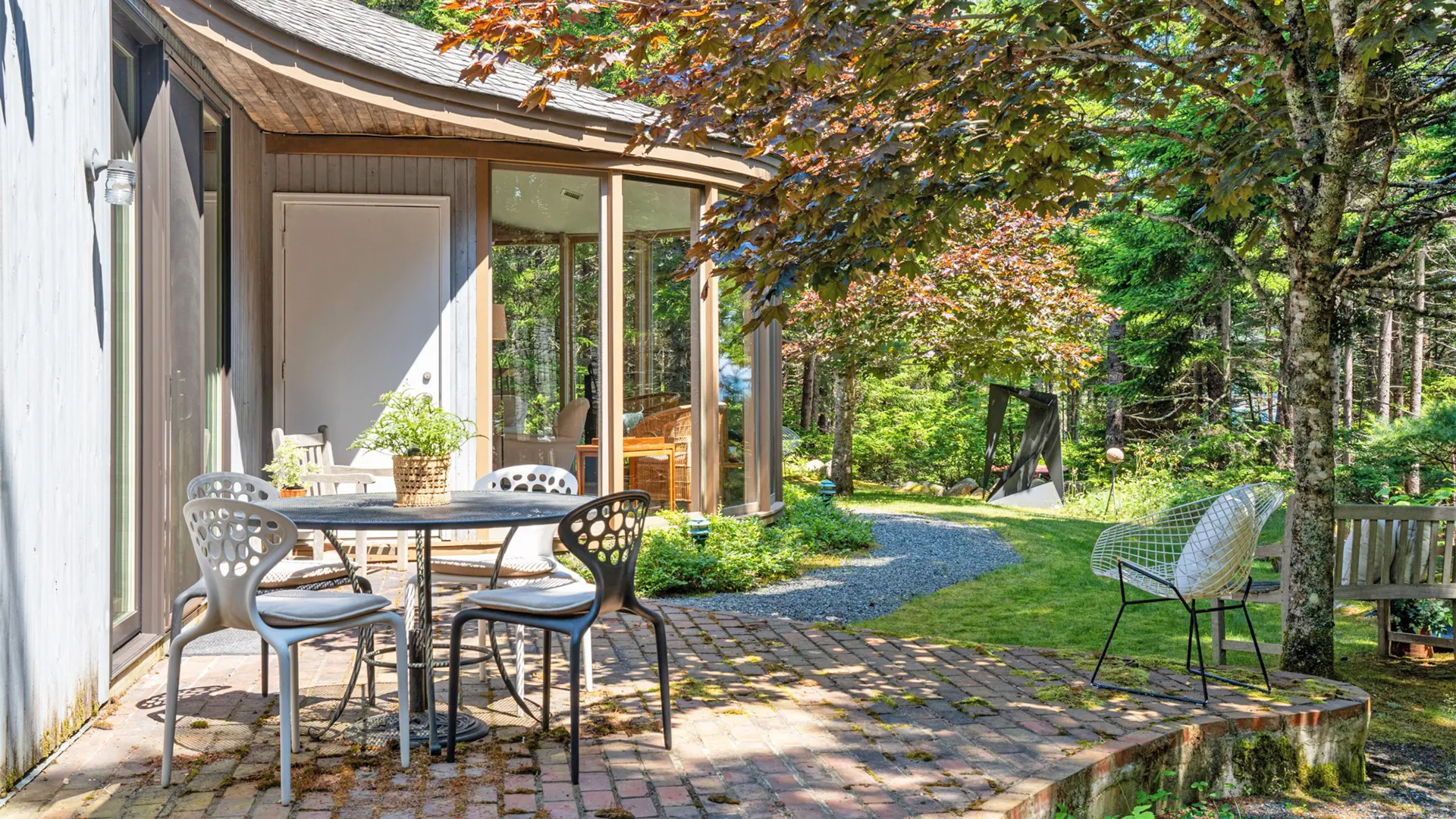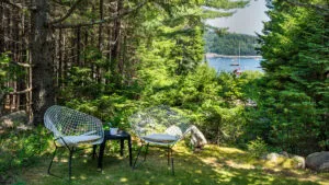 Tucked among towering pines and surrounded by exceptional works of sculpture, this stunning property is a rare find on Mt. Desert Island. With beautiful grounds, gardens, and even a play structure for the kids, this home is a terrific find for those looking to host their family but wish for a little “distance” while in residence. Of significant note is the homeowners exquisite taste in art, thoughtfully curated and displayed throughout the two dwellings.