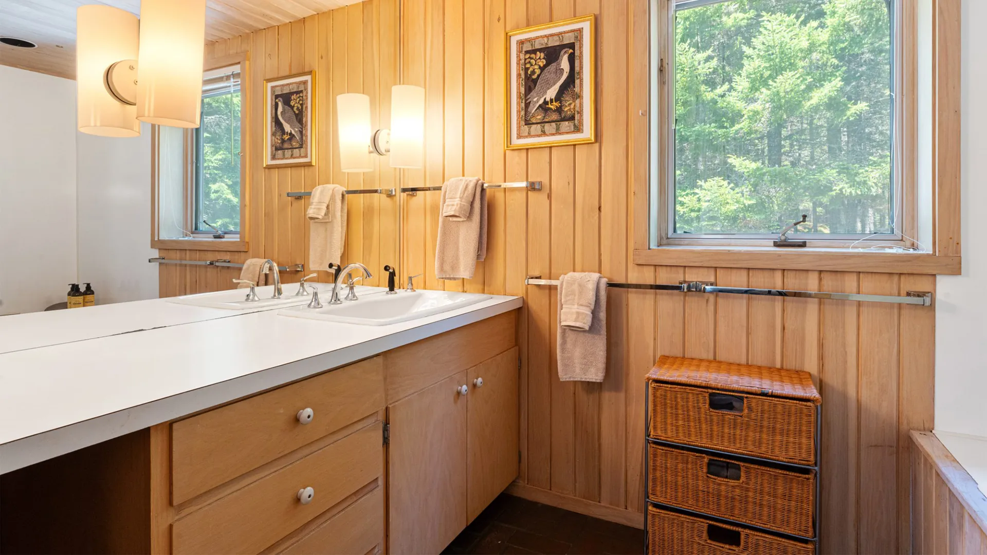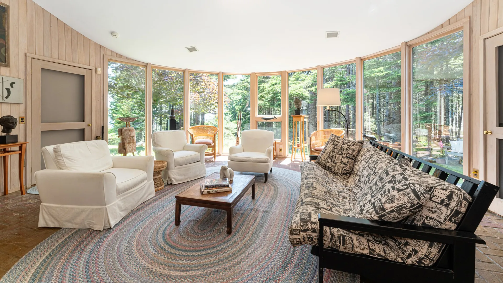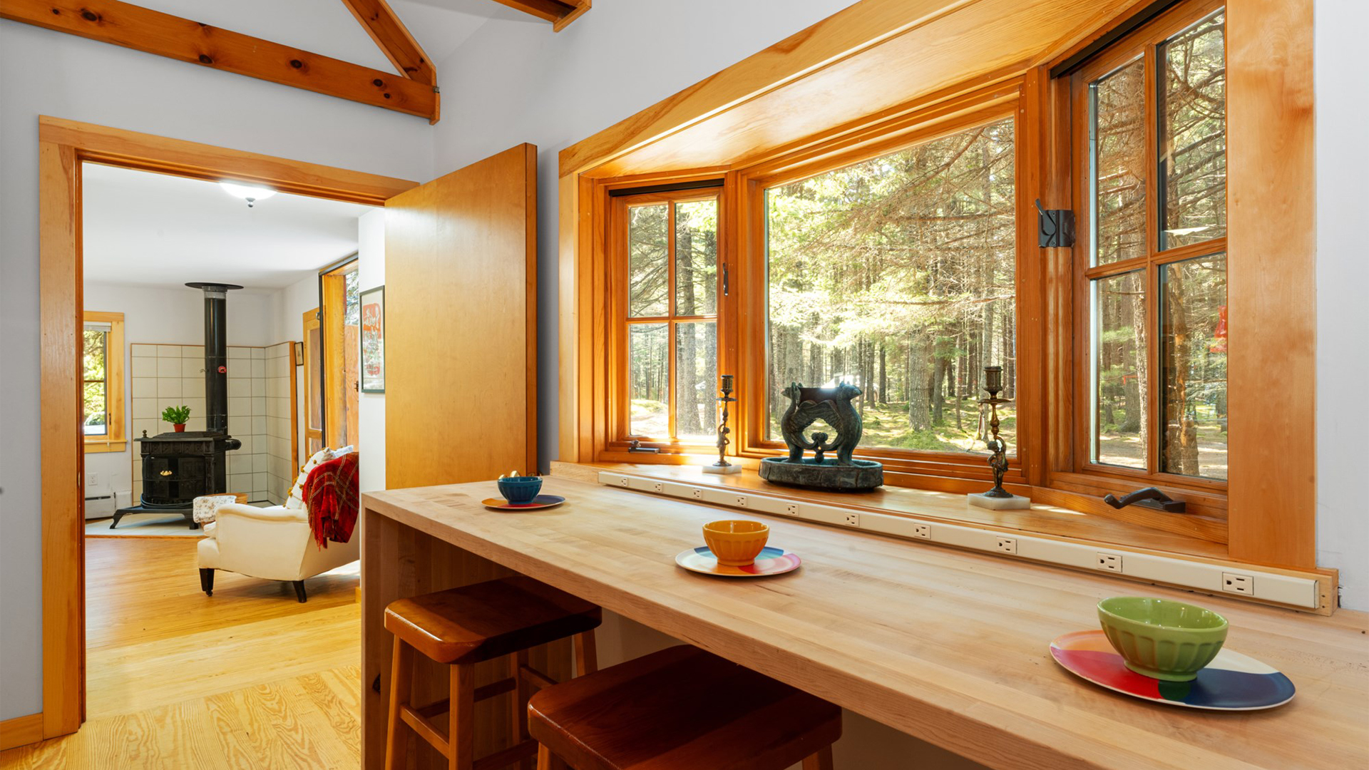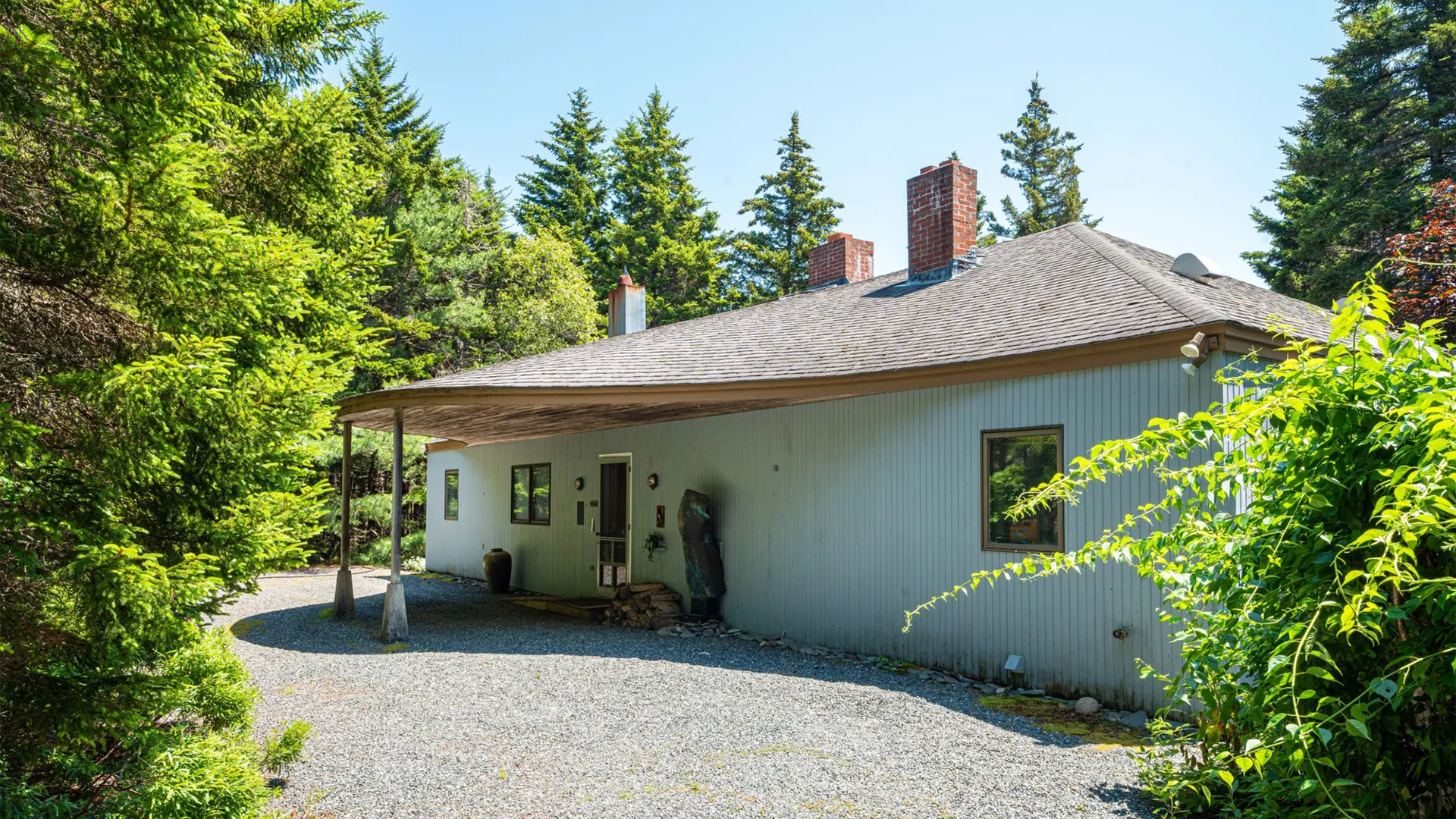 Tucked among towering pines and surrounded by exceptional works of sculpture, this stunning property is a rare find on Mt. Desert Island. With beautiful grounds, gardens, and even a play structure for the kids, this home is a terrific find for those looking to host their family but wish for a little “distance” while in residence. Of significant note is the homeowners exquisite taste in art, thoughtfully curated and displayed throughout the two dwellings.