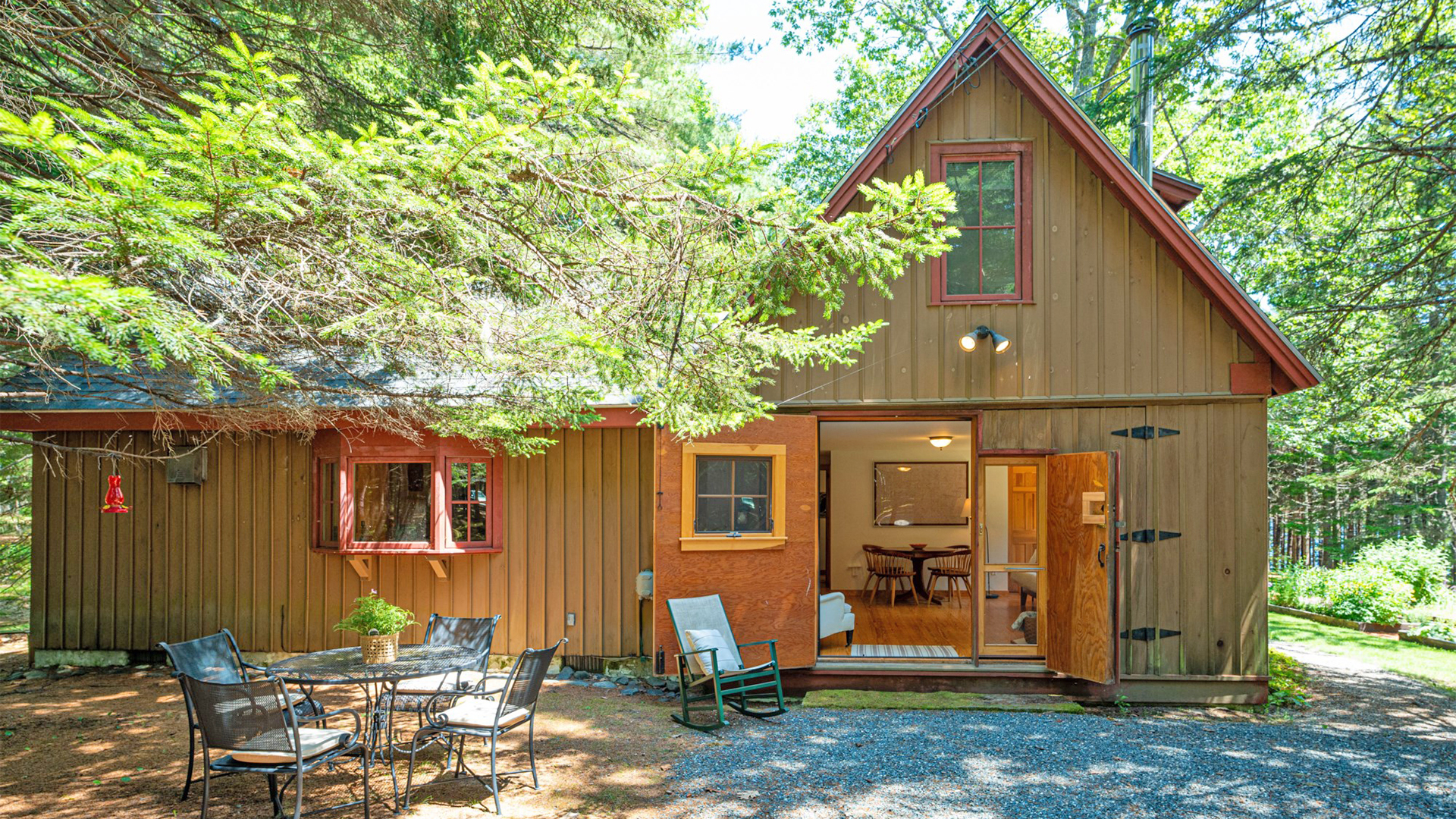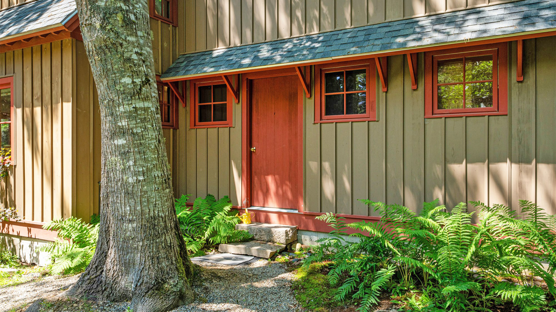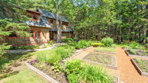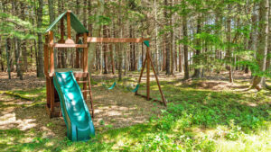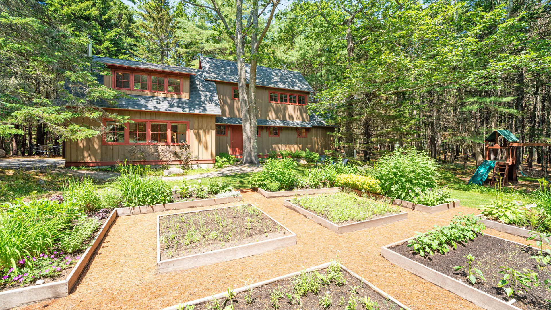 OUTDOOR SPACES: Surrounded by mature woods, well-maintained cutting and vegetable gardens, and paths threading throughout the property, the outdoor spaces offer relaxing spots to gather, dine, or retreat. Be sure to check out the kids’ play structure and hot tub offering water views while you relax!