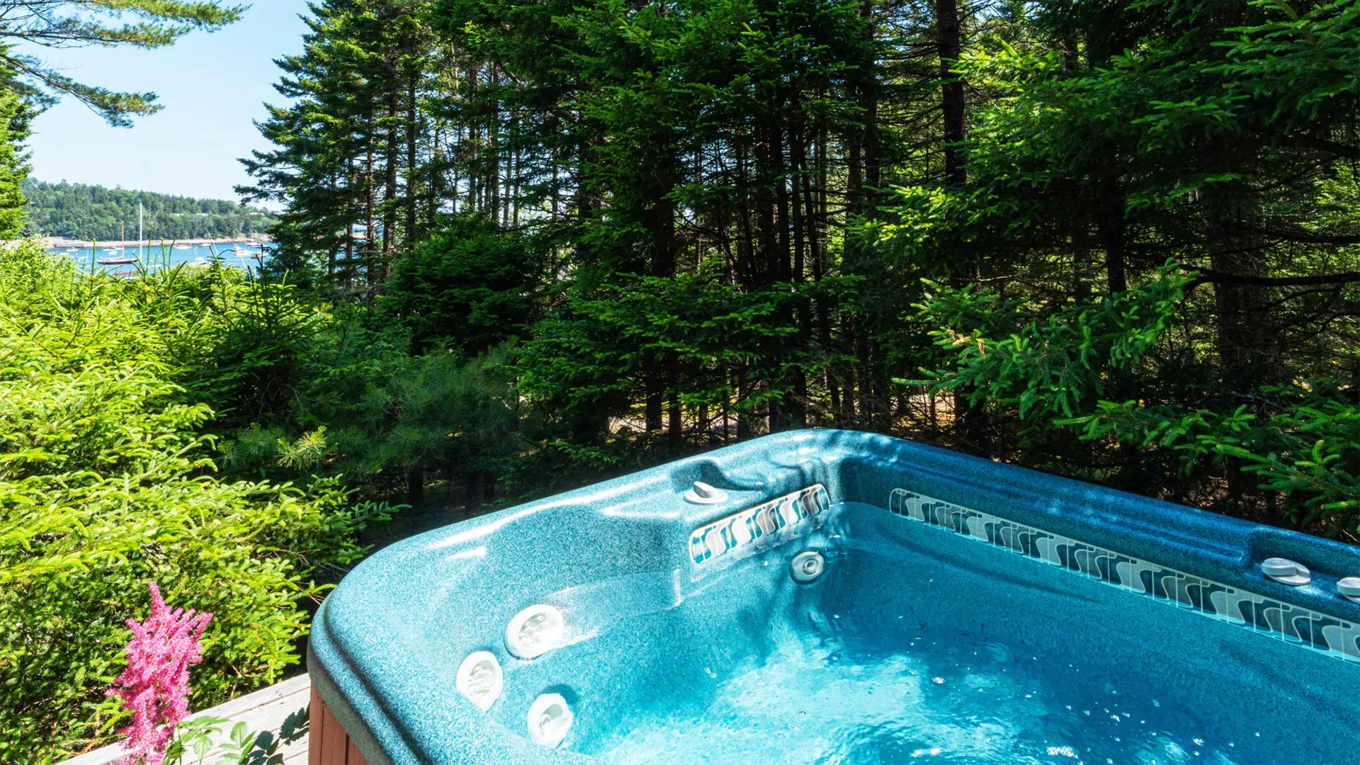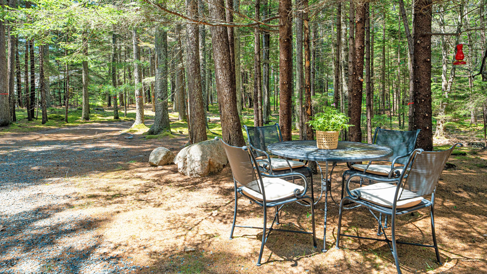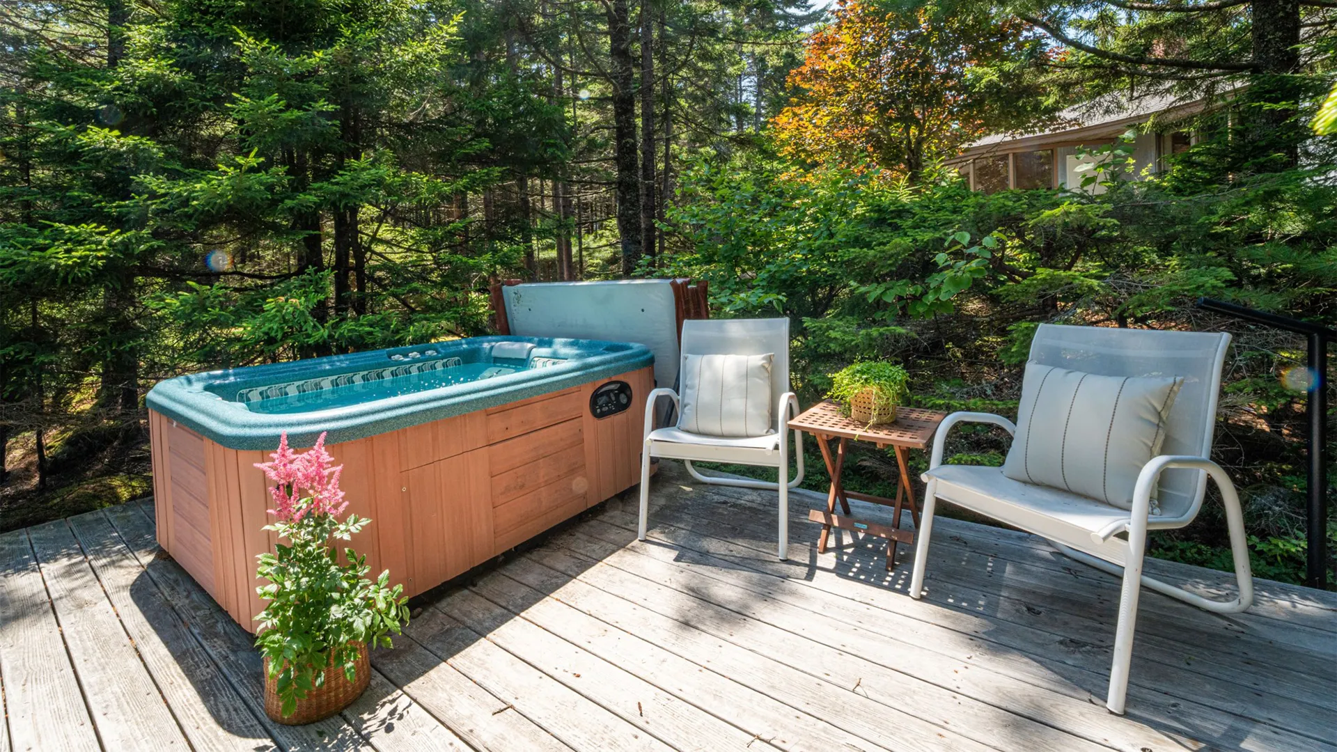 OUTDOOR SPACES: Surrounded by mature woods, well-maintained cutting and vegetable gardens, and paths threading throughout the property, the outdoor spaces offer relaxing spots to gather, dine, or retreat. Be sure to check out the kids’ play structure and hot tub offering water views while you relax!
