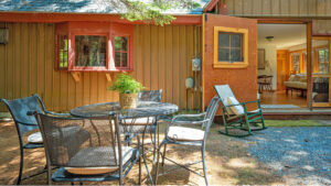 NOTE: Although this home can sleep up to 14 people, and the Living Room in the Main House can accommodate that many for gathering, there is no dining space big enough to accommodate everyone for a single meal, unless one chooses to eat outside on “laps.”