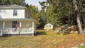 FIRST FLOOR: Although most people enter through the Kitchen door at the back of the house, the main entrance opens to a welcoming foyer. To the left is a roomy Living Room with a gorgeous, showcase granite fireplace. To the right, a Dining Room with seating for up to eight. Updated farmhouse style Kitchen with adjacent Laundry area and back entry. Also on this floor is a Full Bath with shower stall.SECOND FLOOR: Primary Bedroom 1 with Queen Bed and water views. Bedroom 2 with Double Bed. Bedroom 3 with Twin Beds, and Bedroom 4 with a single bed and water views. Full Bath with clawfoot tub and afterthought shower.