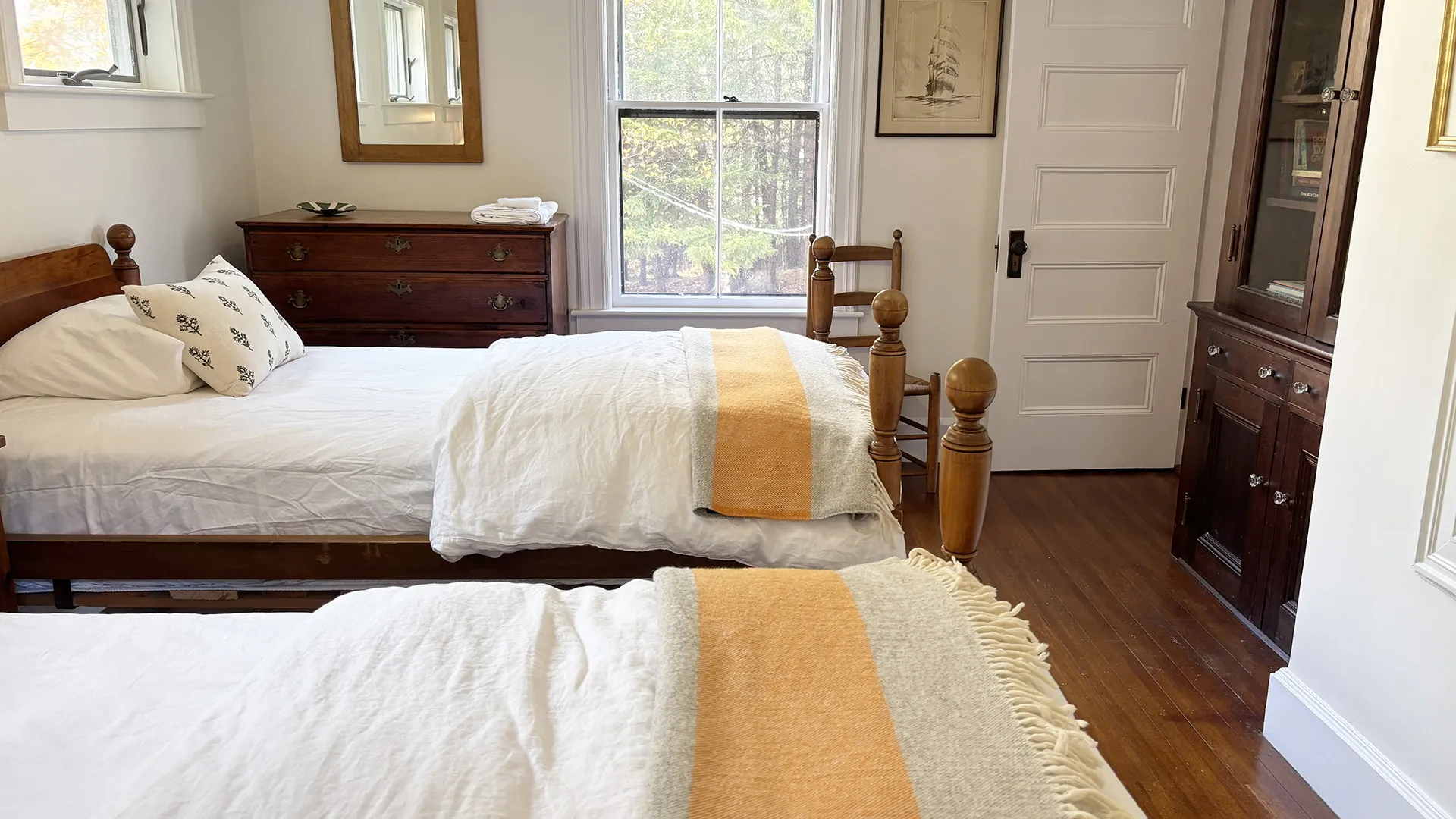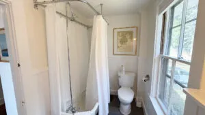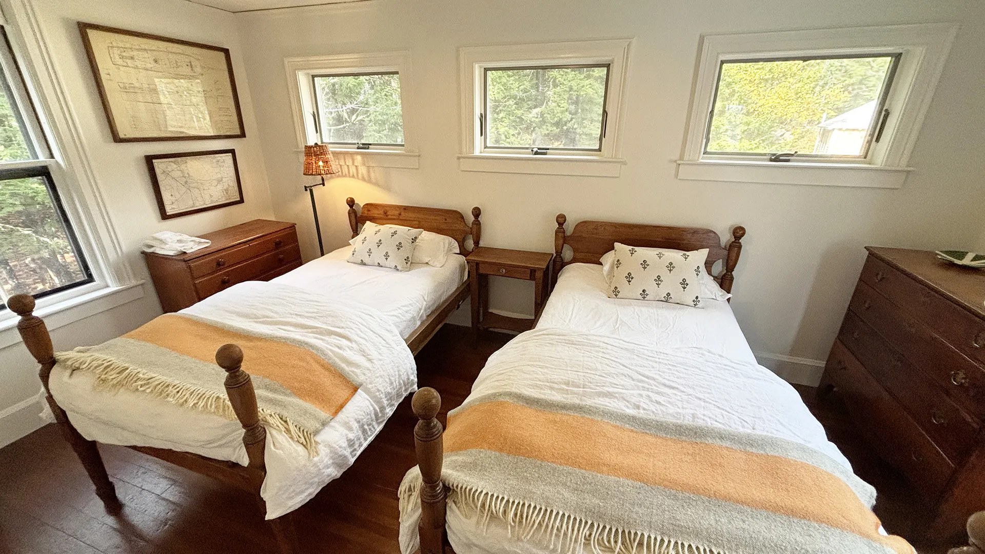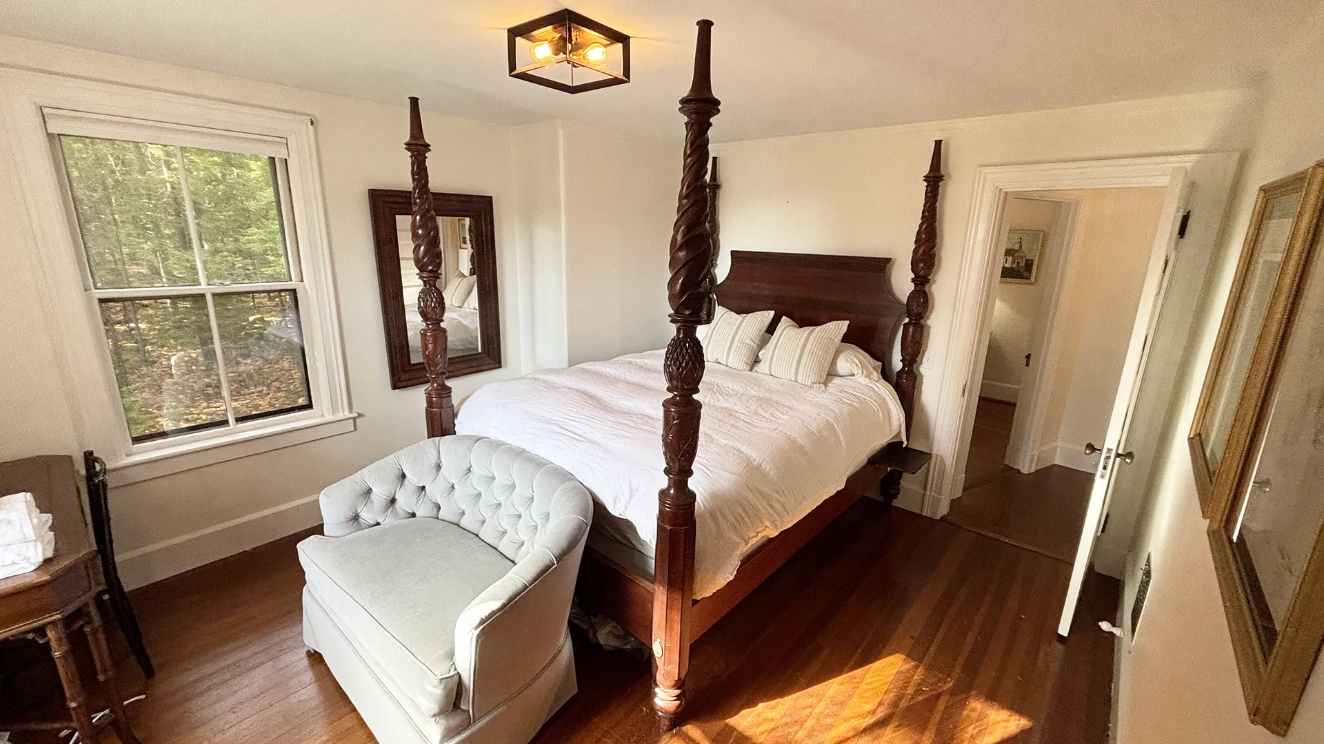 SECOND FLOOR: Primary Bedroom 1 with Queen Bed and water views. Bedroom 2 with Double Bed. Bedroom 3 with Twin Beds, and Bedroom 4 with a single bed and water views. Full Bath with clawfoot tub and afterthought shower.