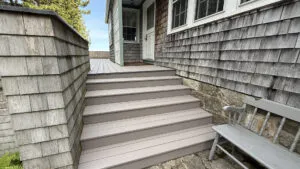 OUTDOOR SPACES: Wrap-around porches with multiple sitting and dining areas, and steps leading to a sloped and terraced lawn for play. Ample parking in the circular drive. Towering spruce and fir grace the moss covered ledges around the property. At the back of the house discreetly placed is a wonderful outdoor, hot water shower.