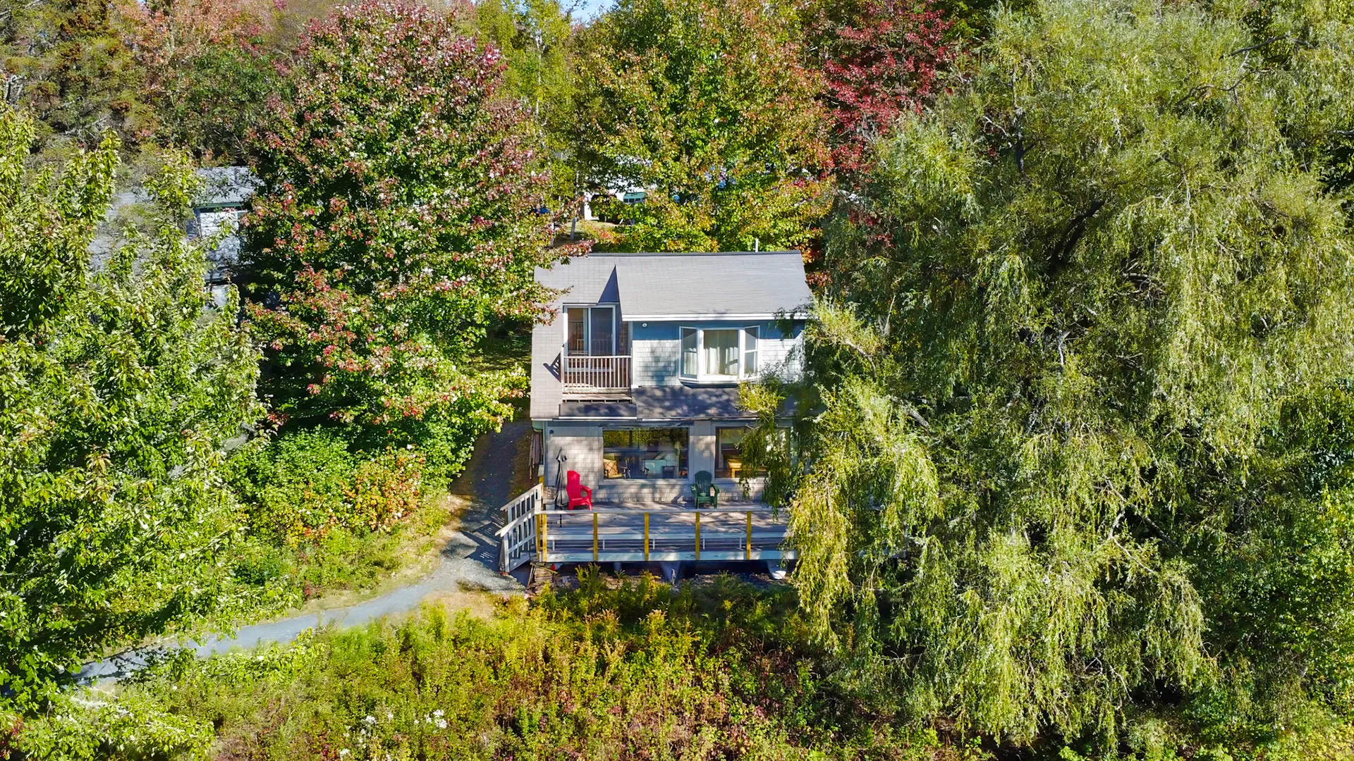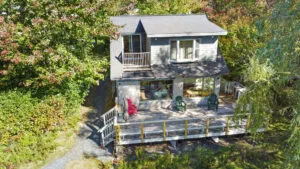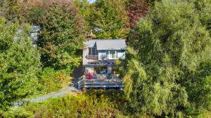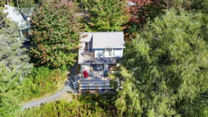 FIRST FLOOR: Enter from the main deck into an open concept Living Dining and Kitchen area with walls of windows for views, updated appliances, and propane fired woodstove to take off the chill on a cool evening. Table seats three to four for dining, with an additional table with leaves that can be opened to seat more if needed. All before picture windows revealing the expansive water views. Note that there is no TV, but newly installed Internet accommodates streaming on your preferred device. Just beyond the Living area is a Bedroom with Trundle Bed, which make for a slightly tight space for adults when open, but is perfectly suitable for kids. Shared Full Bath with walk-in shower.