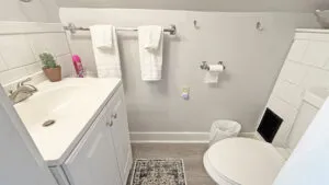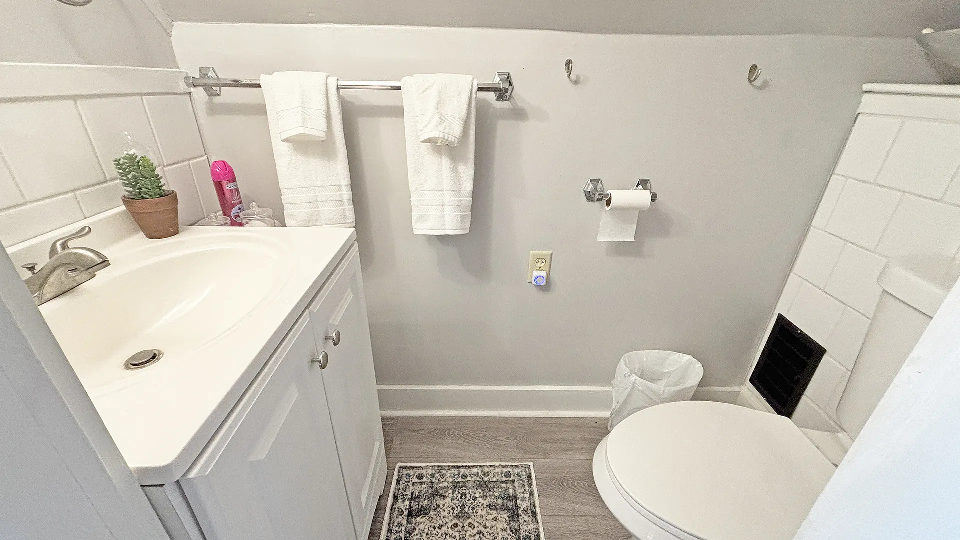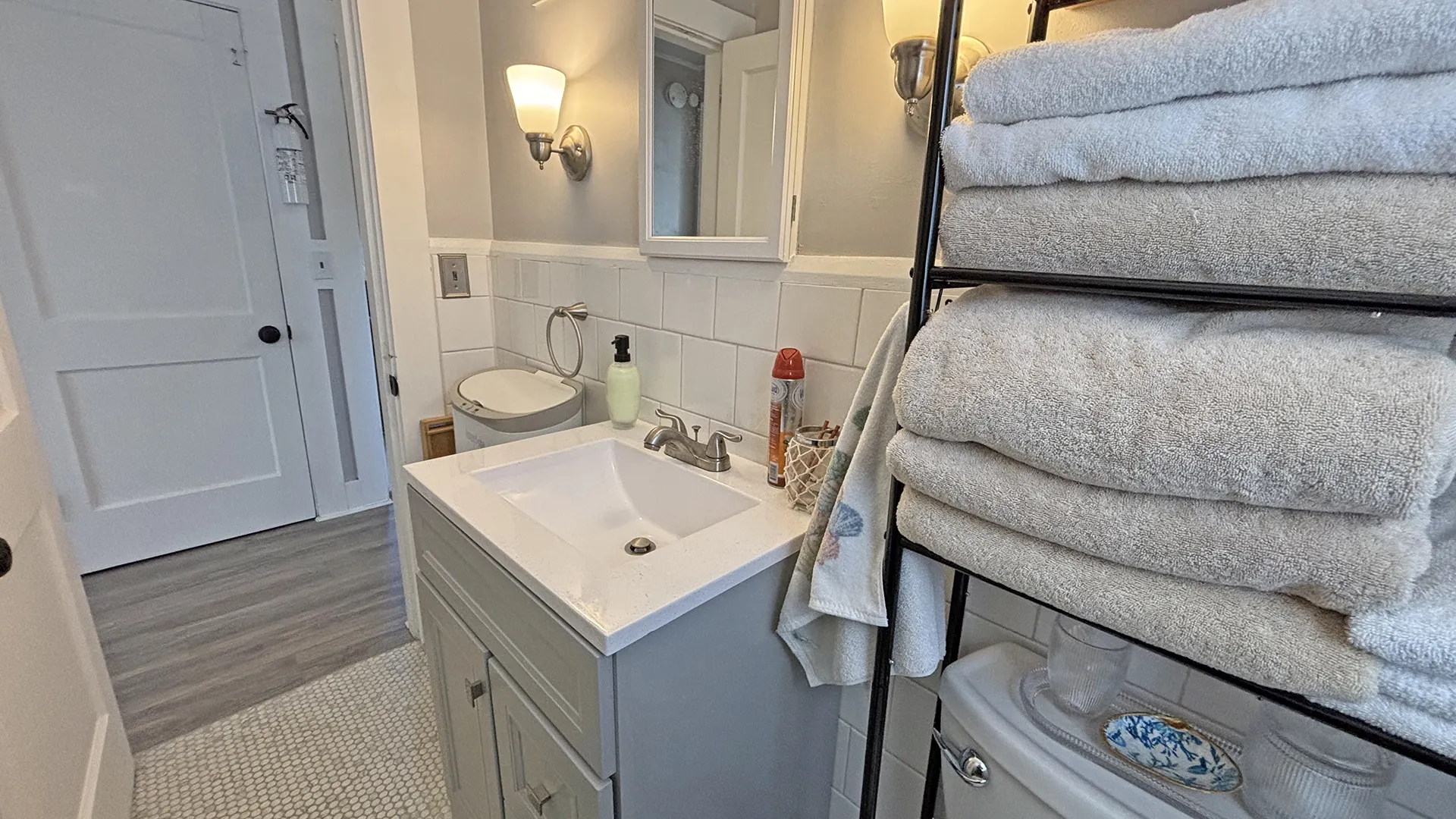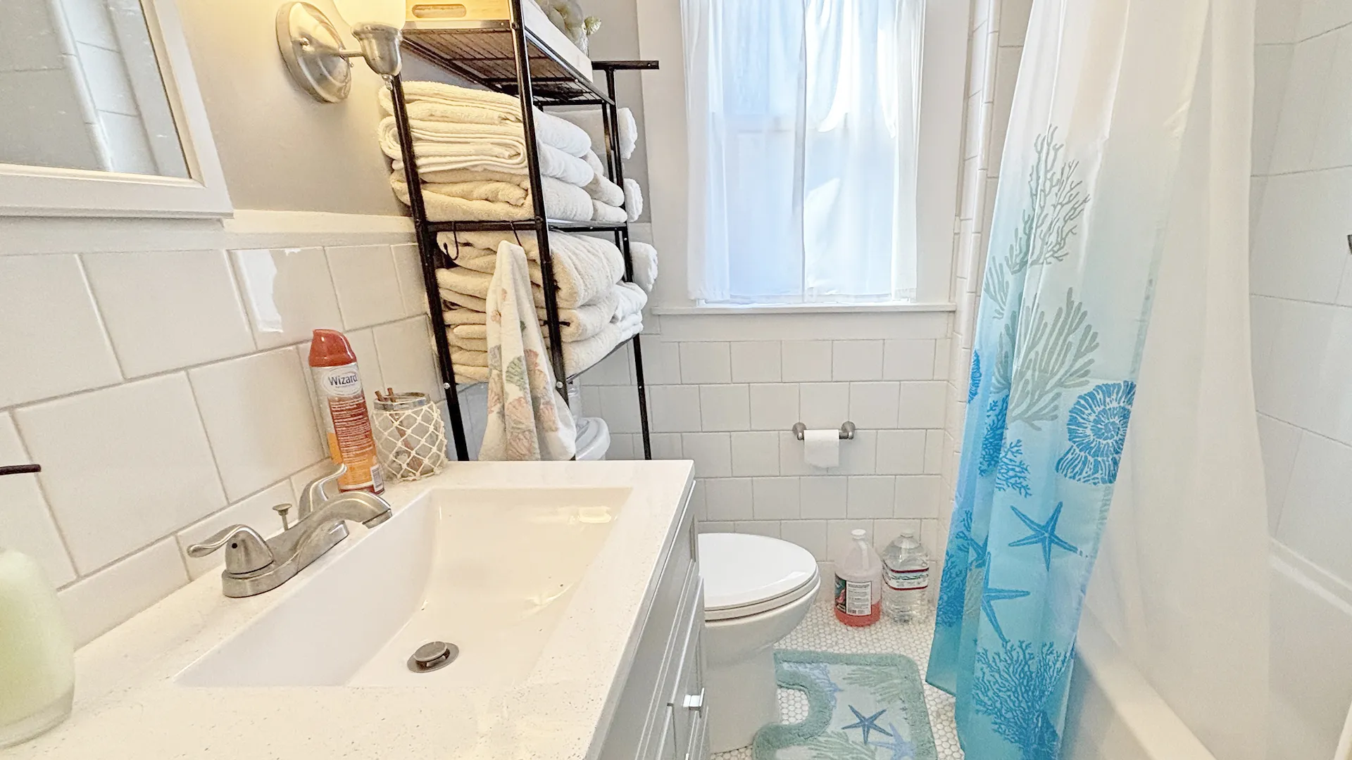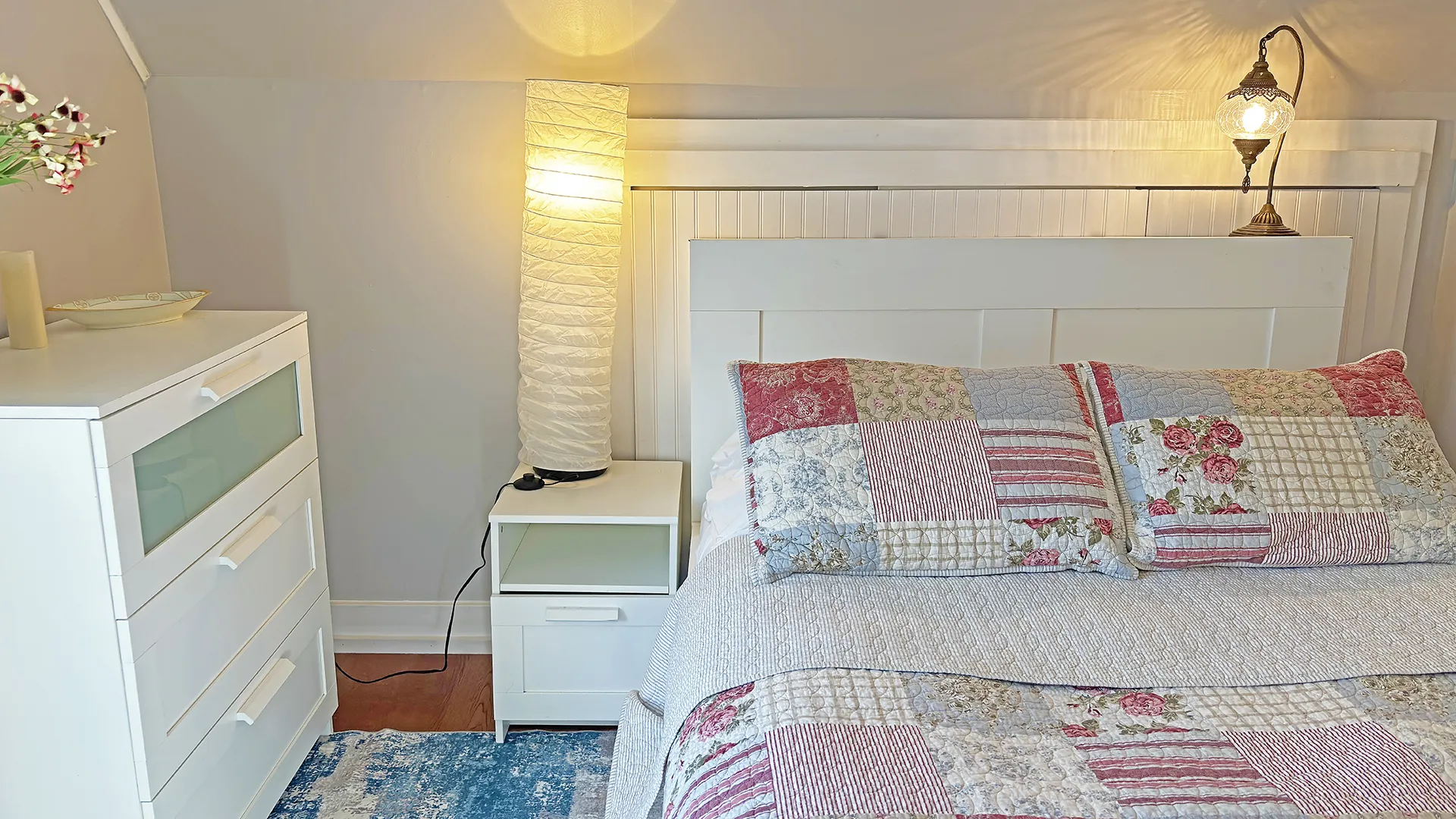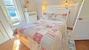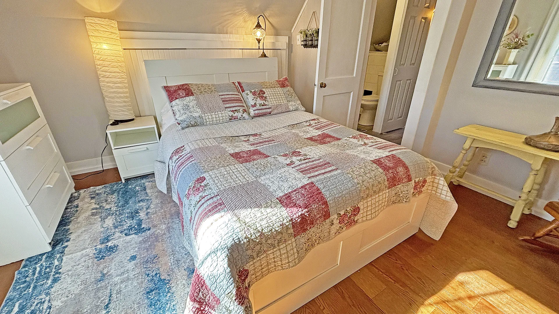 SECOND FLOOR: Bedroom with Queen Bed and Bedroom with Double Bed share a Half Bath in the hall.