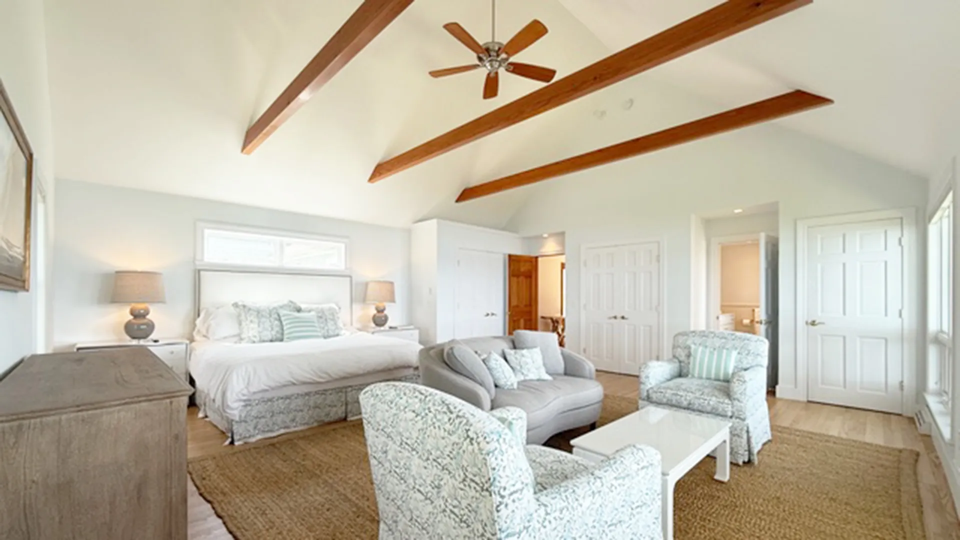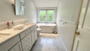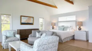 HONEYMOON SUITE: Connected via a breezeway to the Main House, for an additional fee, the “Honeymoon Suite” can be added to increase your occupancy from eight to ten. Situated over the garage, this second story additional living and sleeping space features Queen Bed, Full Bath with separate tub and shower, and sitting area.