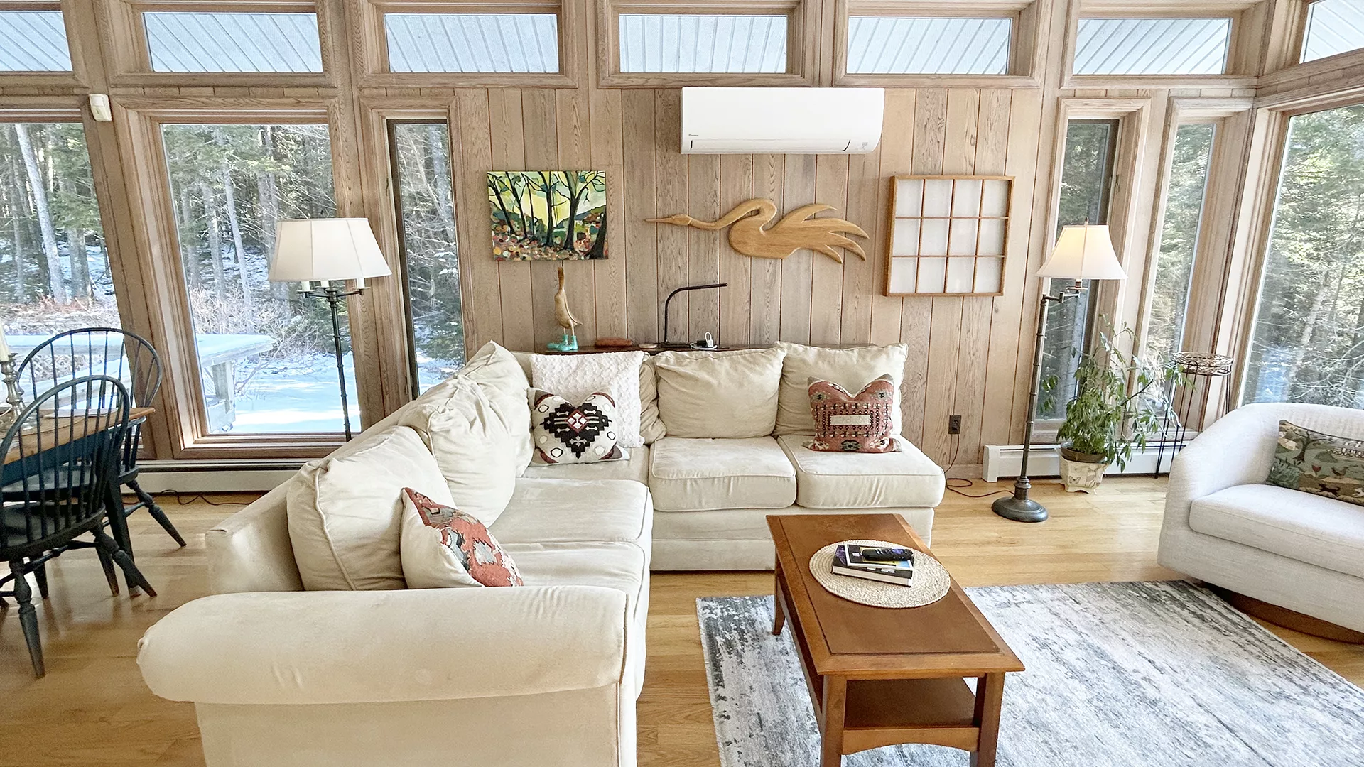 Enjoying lovely views of Back Beach and Bass Harbor’s shores beyond, Lyons Den presents a bright, sun-filled space for your summer stay. Cathedral ceilings, lovely landscaping, and comfortable spaces combine to make a restful destination, only eight minutes from charming Southwest Harbor and 25 minutes to Bar Harbor’s village center and major park entrances. Just a short walk through the woods takes you to Back Beach, a cobblestone beach that’s perfect for strolling or – if you dare – a brisk swim!