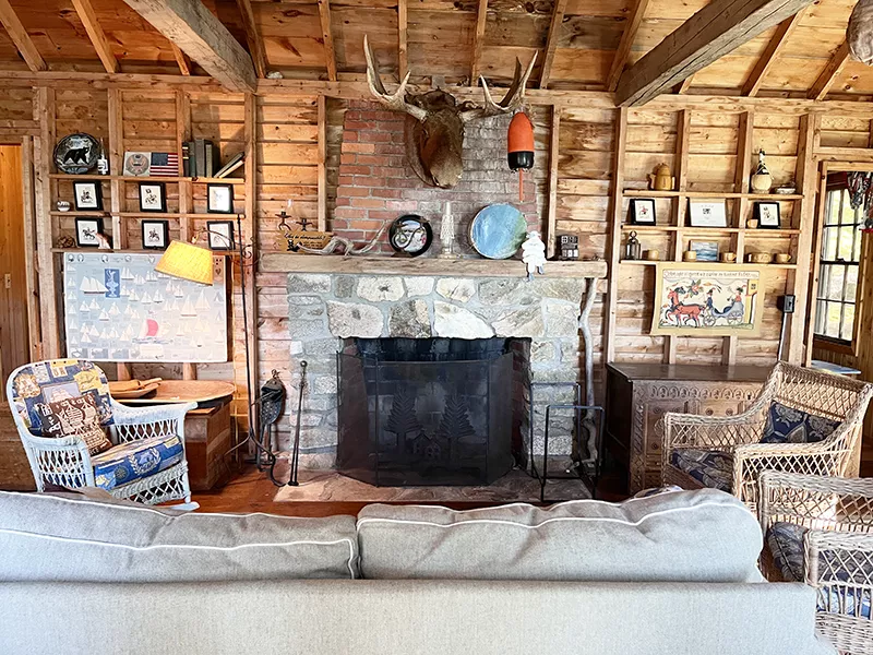 GUEST HOUSE: Included with the rental rate, the detached Guest House offers a rustic retreat for additional family members, or simply a second living space for guests. Featuring a galley-style Kitchen (sorry – no dishwasher!), large Living Room with door to front deck, water views, and massive stone fireplace, complete with overhanging moose head, and plenty of seating. Bedroom with Queen platform bed. Full Bath with combined tub and shower. A small Bedroom with built-in bunk beds may be available and is suitable for young children. Note that although the Guest House can sleep four, and the Main House can sleep six, a maximum occupancy is strictly held to eight people when renting both buildings.