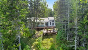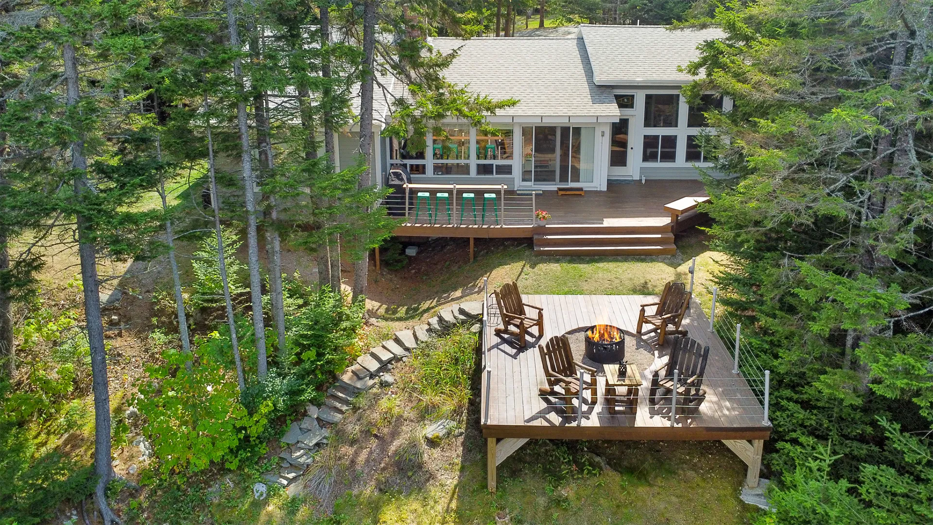 All new hickory hardwood flooring and central heat and air conditioning! This secluded and serene home located on the “Quietside” of Mount Desert Island offers one-level convenience and an open-floor plan layout with many recent renovations and comfortable furnishings. Nestled on a narrow oceanfront cove, the home enjoys beautiful water views through the towering pines. Comfortable for up to eight people, with additional roll-away beds, this home can accommodate up to ten in a pinch for an added fee.