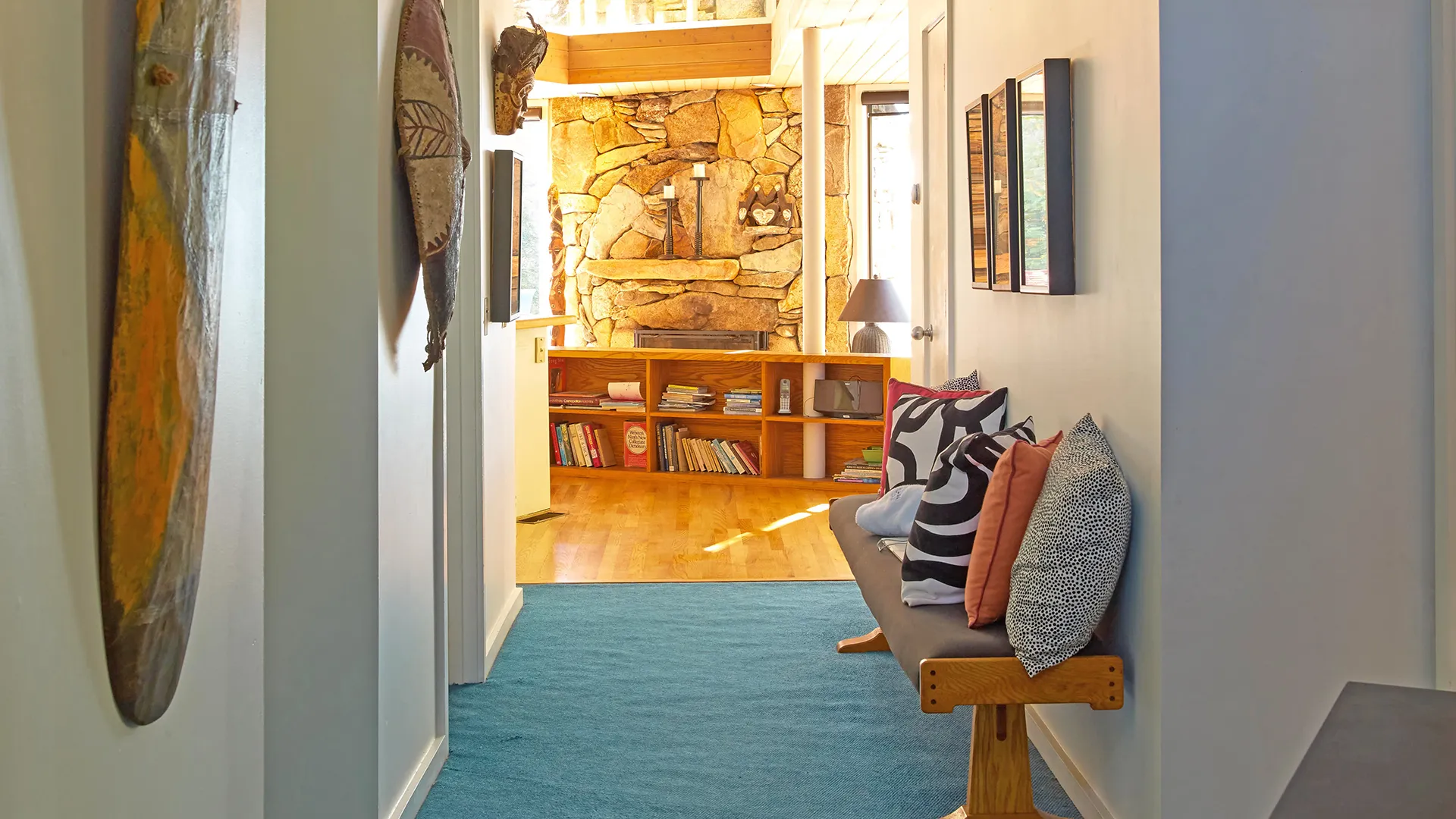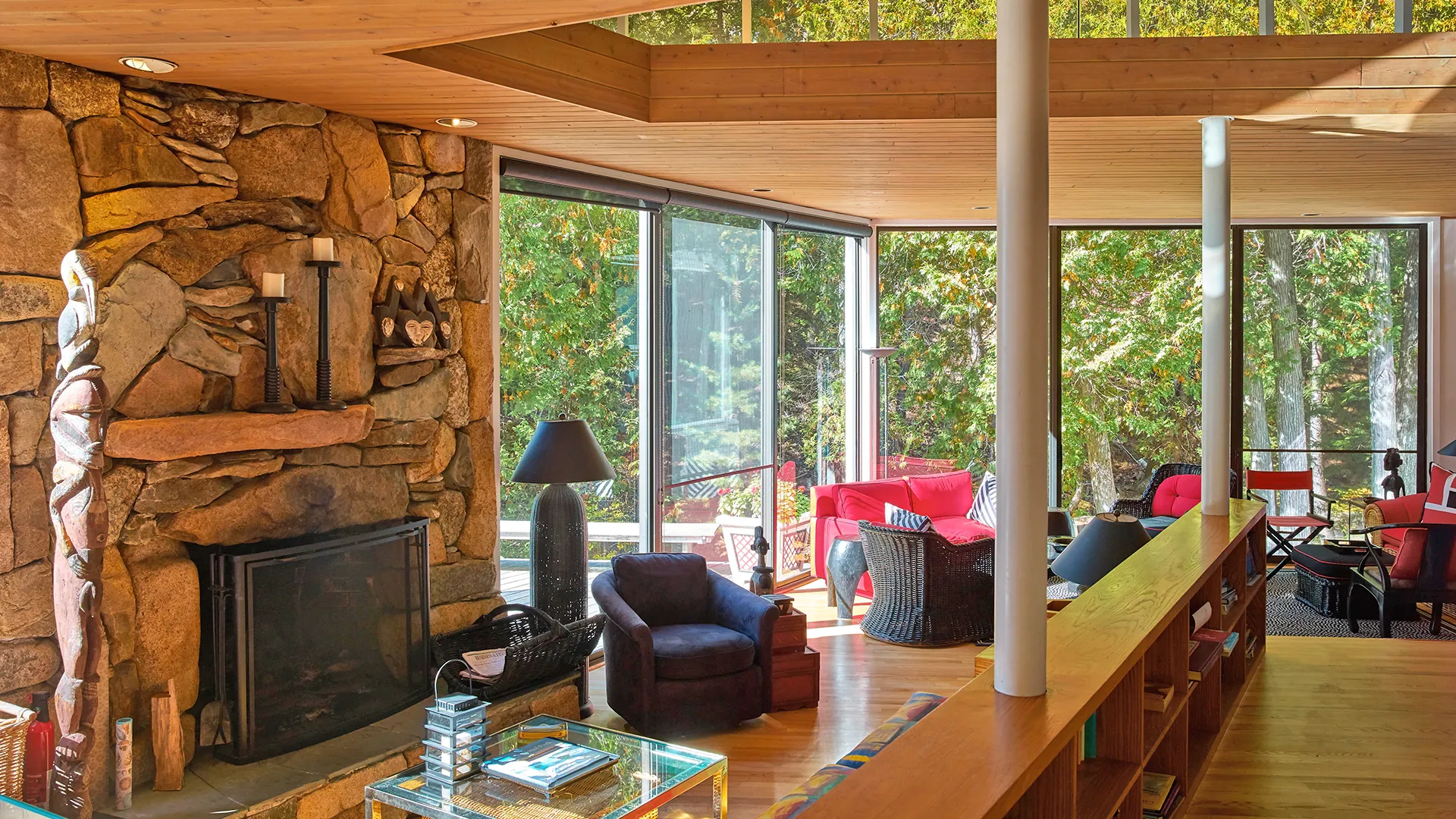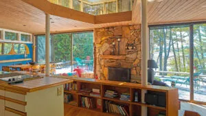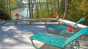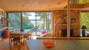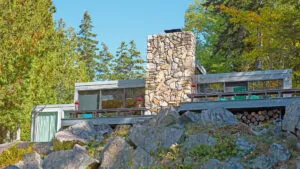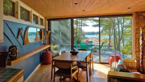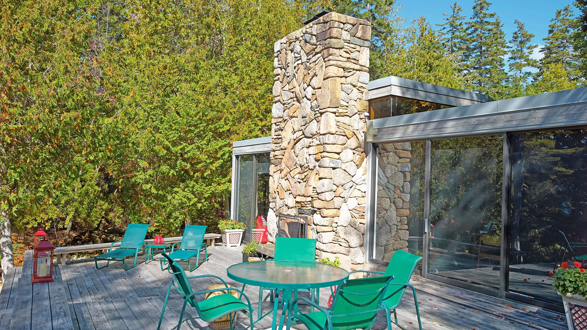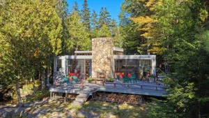 Beds: 1 King, 1 Queen, 4 Singles The sounds of a gentle brook will lull you to sleep or enhance your evenings on the deck of this contemporary cottage on the shores of Somes Sound. With its open, grand living space, this home creates a perfect setting for entertaining, relaxing by the fire, or soaking up the views. FIRST FLOOR: Open Living/Dining/Kitchen area with fireplace and floor to ceiling windows looking out to Somes Sound. Sliders lead to front deck. Private card/game room. Bedroom with queen bed, Private Full Bath; Bedroom with twin beds, Private Full Bath and 2nd Full Bath. Primary Bedroom with king bed and Private Full Bath. Bedroom with single bed; connecting to Full Bath; another Bedroom with single bed and built in desk space. Laundry room. Den with fireplace and wide-screen TV adjacent to house offers a cozy spot for relaxing away from main living areas. OUTDOOR SPACES: Large open Deck with fireplace overlooking a narrow cove that opens to Somes Sound beyond. EXTRAS: Outdoor fireplace.