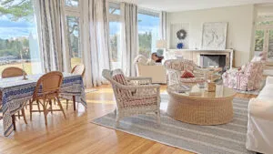Tucked off the road and boasting lovely views of Northeast Harbor’s Fleet and the entrance to Somes Sound, this attractive home has a modern exterior with a sun-filled updated interior that is comfortable and inviting for your off-season visit to Mt. Desert Island and Acadia National Park. Enjoy privacy, peace, and quiet, all within easy reach to the charming village center.