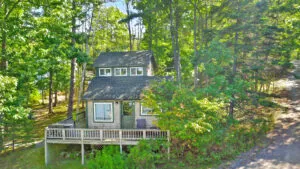 FIRST FLOOR: Stairs lead from the driveway to a furnished front deck and entry to a combined Kitchen and Living area with table that seats four. Though small, the galley-style Kitchen has everything you need to prepare meals at home. Bedroom with King Bed and Full Bath with stall shower are also found on the first floor. Washer/dryer located in closet.SECOND FLOOR: At the top of a narrow staircase, a Bedroom with Twins features windows overlooking the living area and enjoys water views beyond, but don’t worry – the windows and bedroom can be closed off for privacy when appropriate.