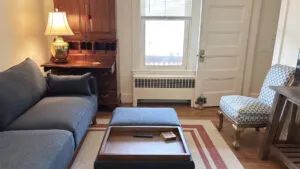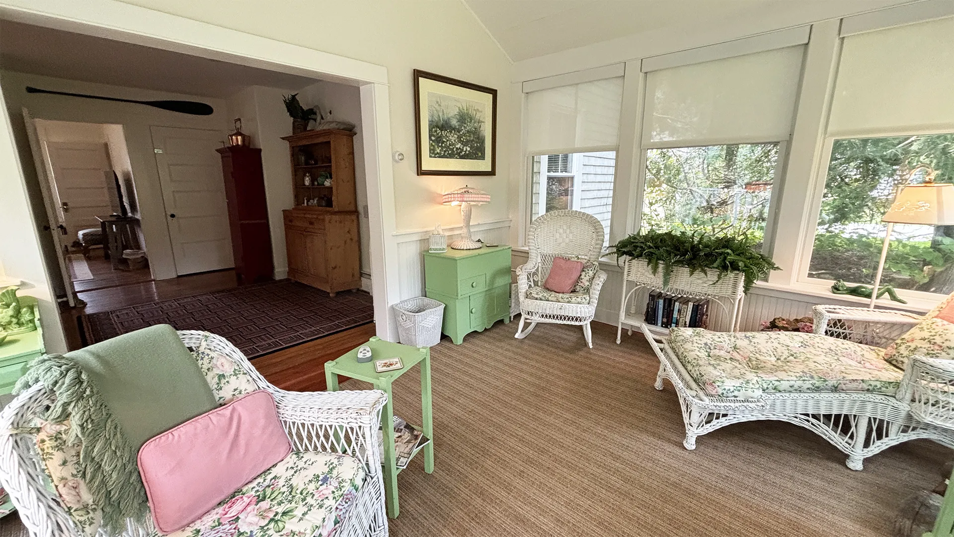 Situated in the heart of Northeast Harbor’s charming village, this sweet cottage offers convenience to the marina as well as Main Street, all while preserving a nice sense of privacy. With a delightful mix of updated furnishings and tasteful antiques, the interior spaces are attractive and comfortable for up to six people! Your favorite Northeast Harbor restaurants and shops are just a stone’s throw away, as well as the dynamic waterfront of the marina at the bottom of the hill. Public tennis and pickle ball courts, the Island Explorer free shuttle, and passenger ferries to the outer islands are all within easy reach from this conveniently located home!