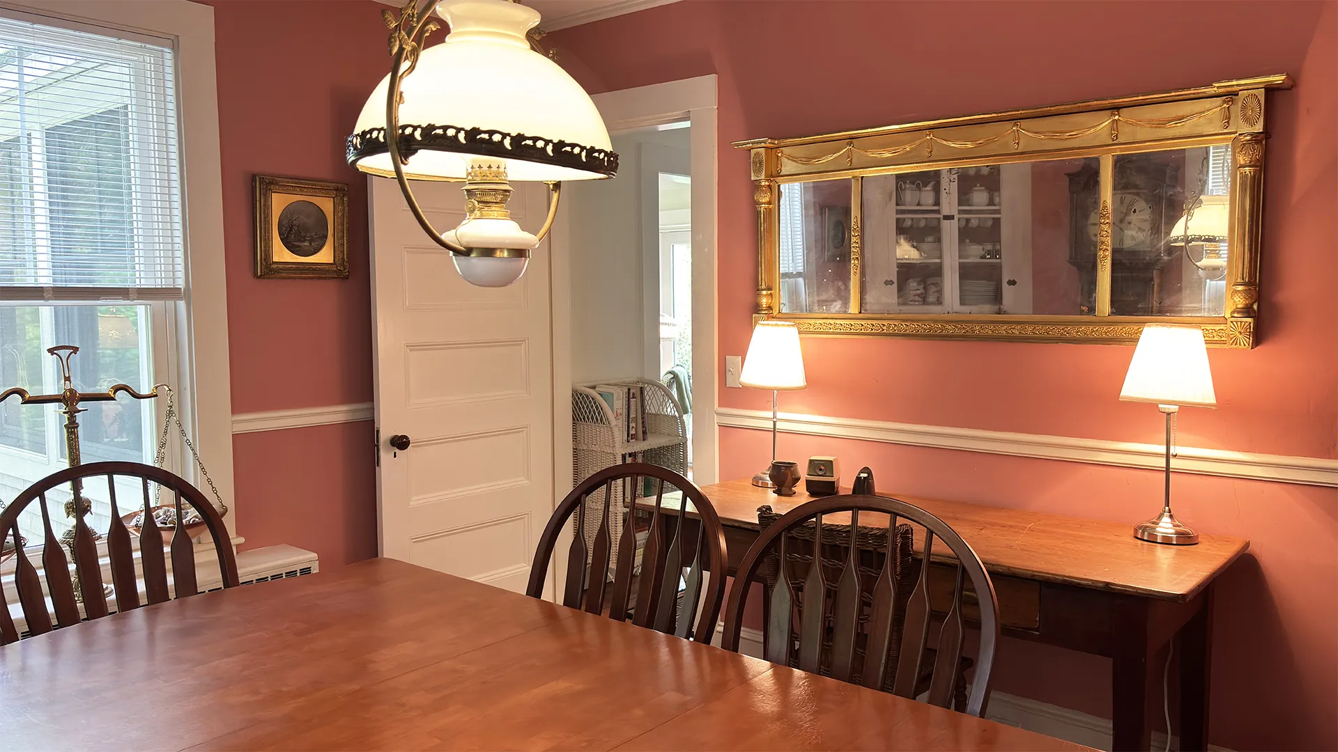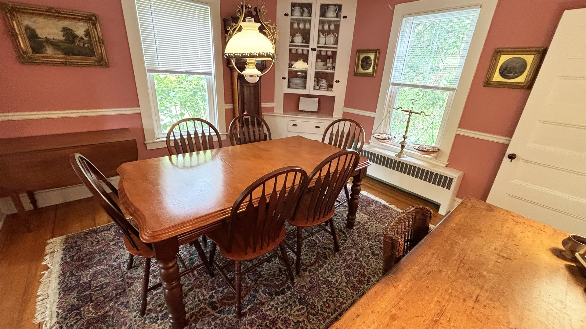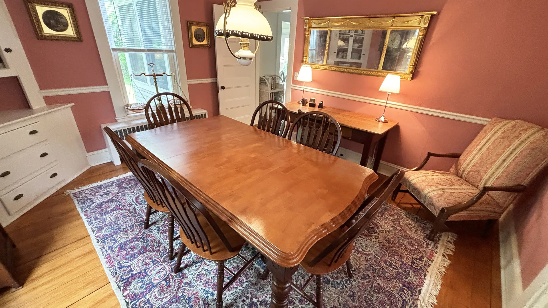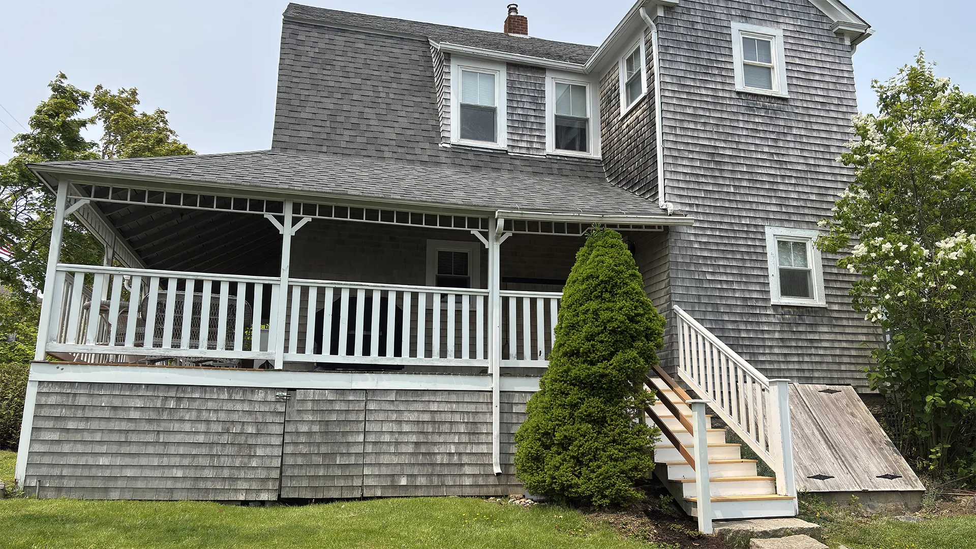 OUTDOOR SPACES: Accessed from the Kitchen or from the Living Room, a wrap-around covered porch provides ample sitting and dining areas overlooking the front and side yards. A smaller deck, accessed by sliders from the Garden Room, accommodates a propane grill and overlooks the roomy backyard, safe for play and private in feel. Off-street parking for up to three cars. Note that this road is relatively quiet, but will have pedestrian traffic during the day. While the town office and fire station are across the road, this part of town is generally considered very quiet at night.