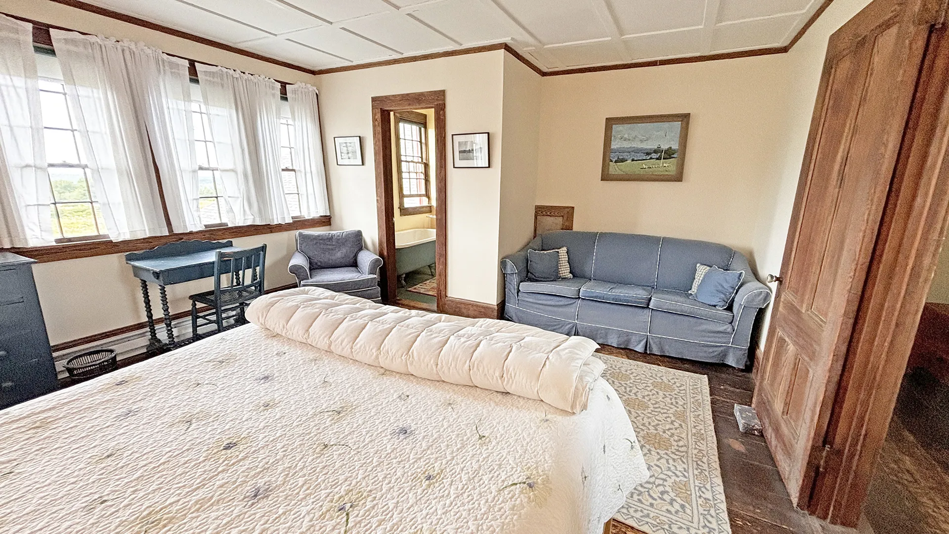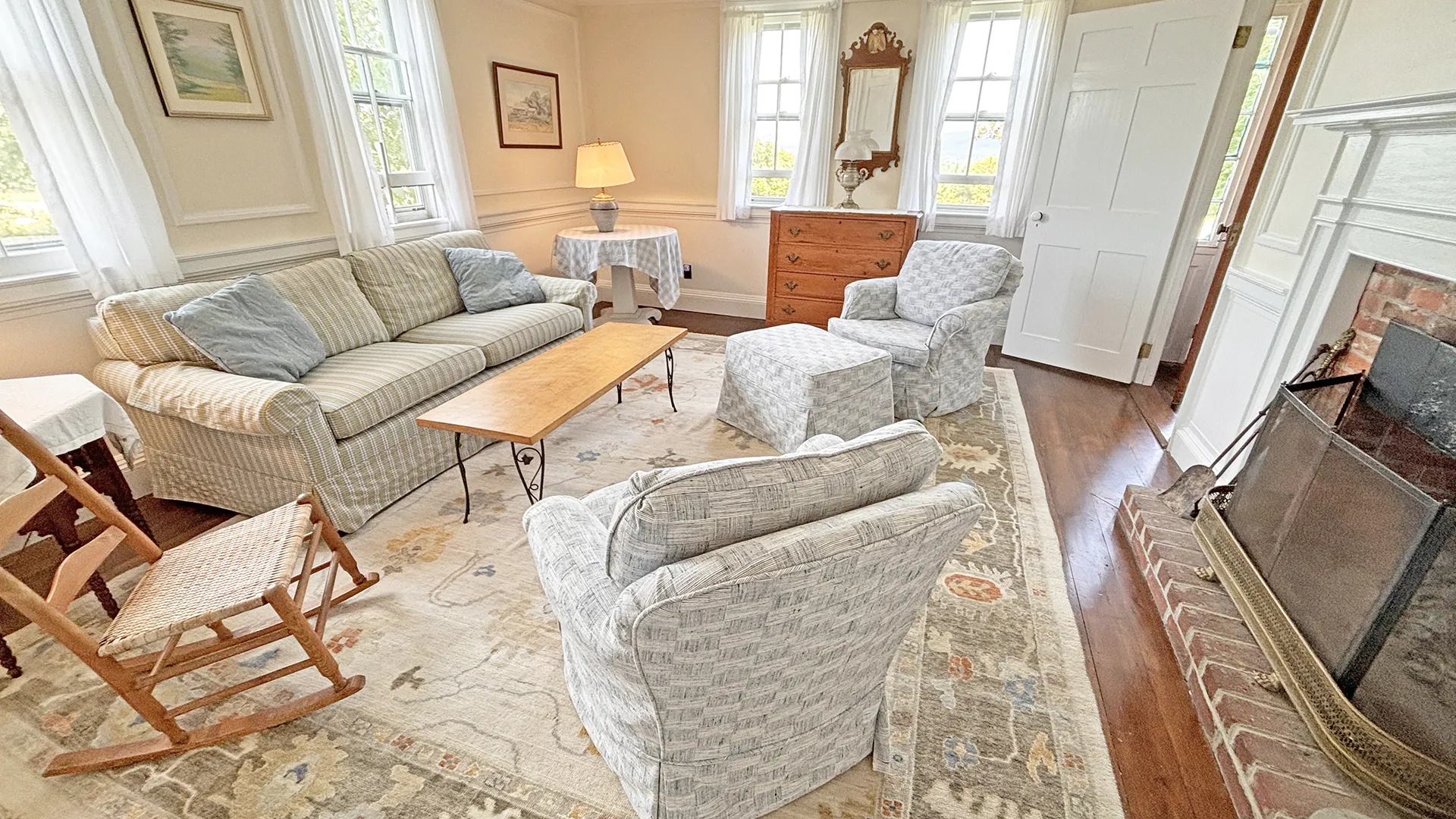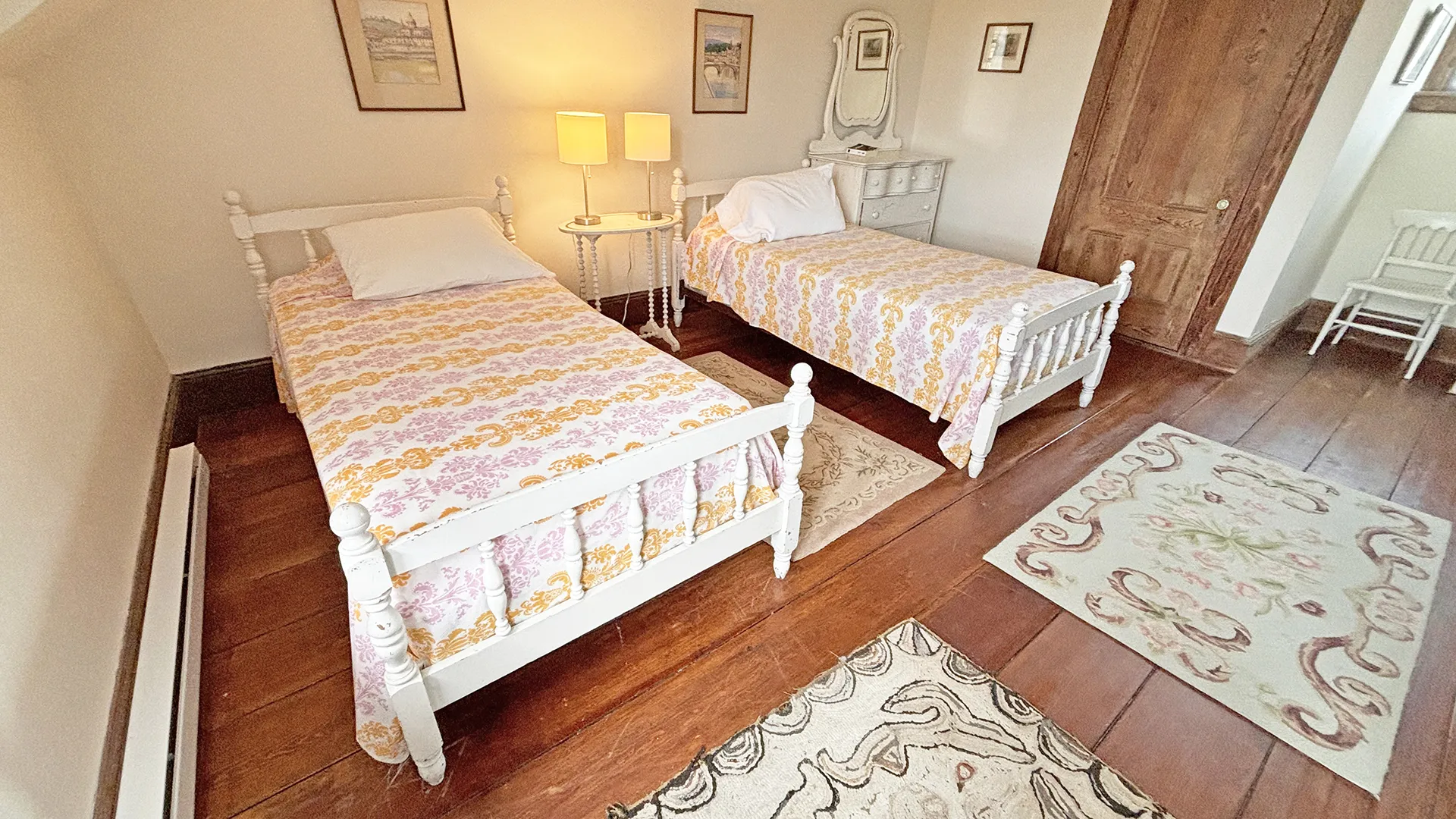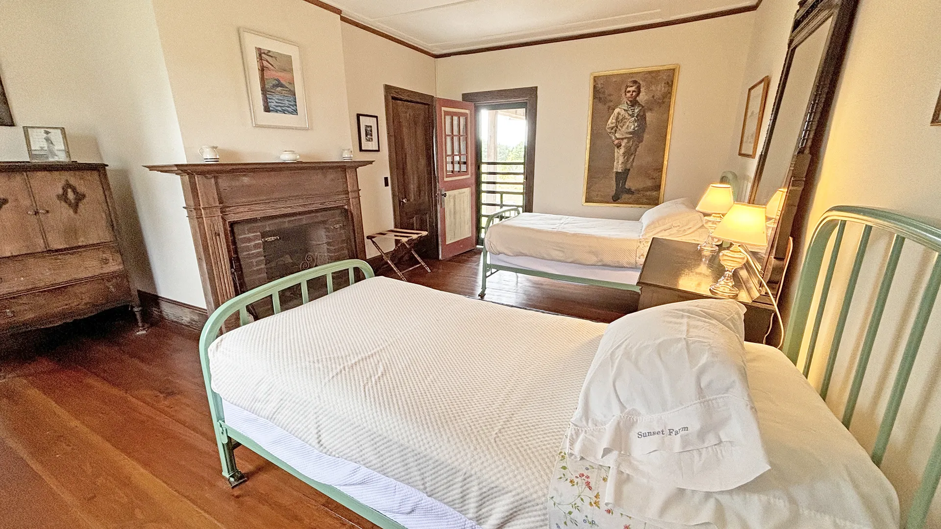 FIRST FLOOR: Living room with mountain views and comfortable seating for six leads to a semi-formal Dining Room with stunning hand-painted, historic mural depicting rural life on Mt. Desert Island. Steps further, a breakfast room serves as a more intimate spot for dining or game play around its small table. Adjacent to the Living Room is a Bedroom with Twin Beds. Off the back entry hall is an updated Full Bath with combined tub and shower. Beyond the Breakfast Room is an updated Kitchen, well-stocked for meal prep. Able to be closed off or left open, the Laundry room, shared with Sunset Farm West, is also found near the Kitchen and serves as the connector between the two residences.SECOND FLOOR: Stairs lead to three Bedrooms, one with a King Bed, one with Double Bed, and one with a Single. These three rooms enjoy mountain views and shared access to a Full Bath with clawfoot tub only.