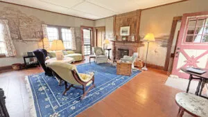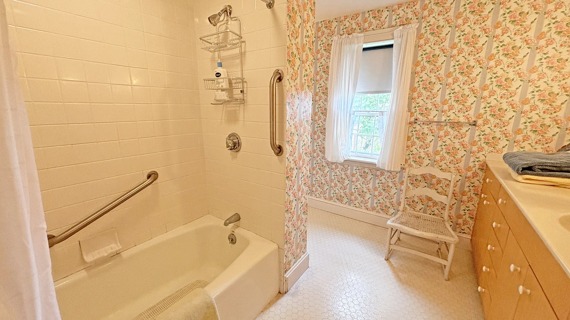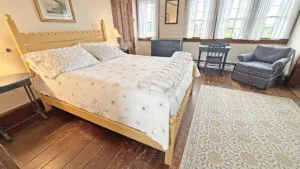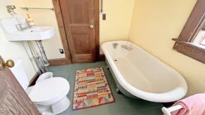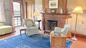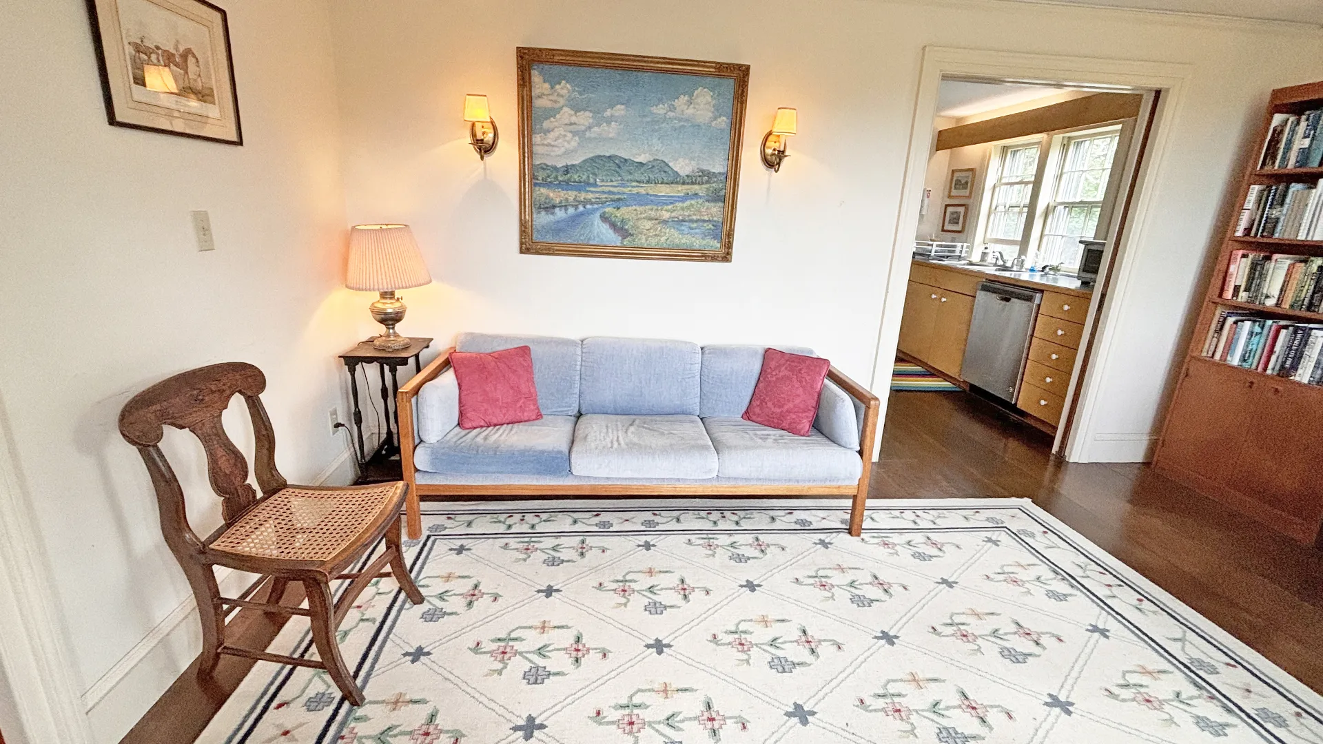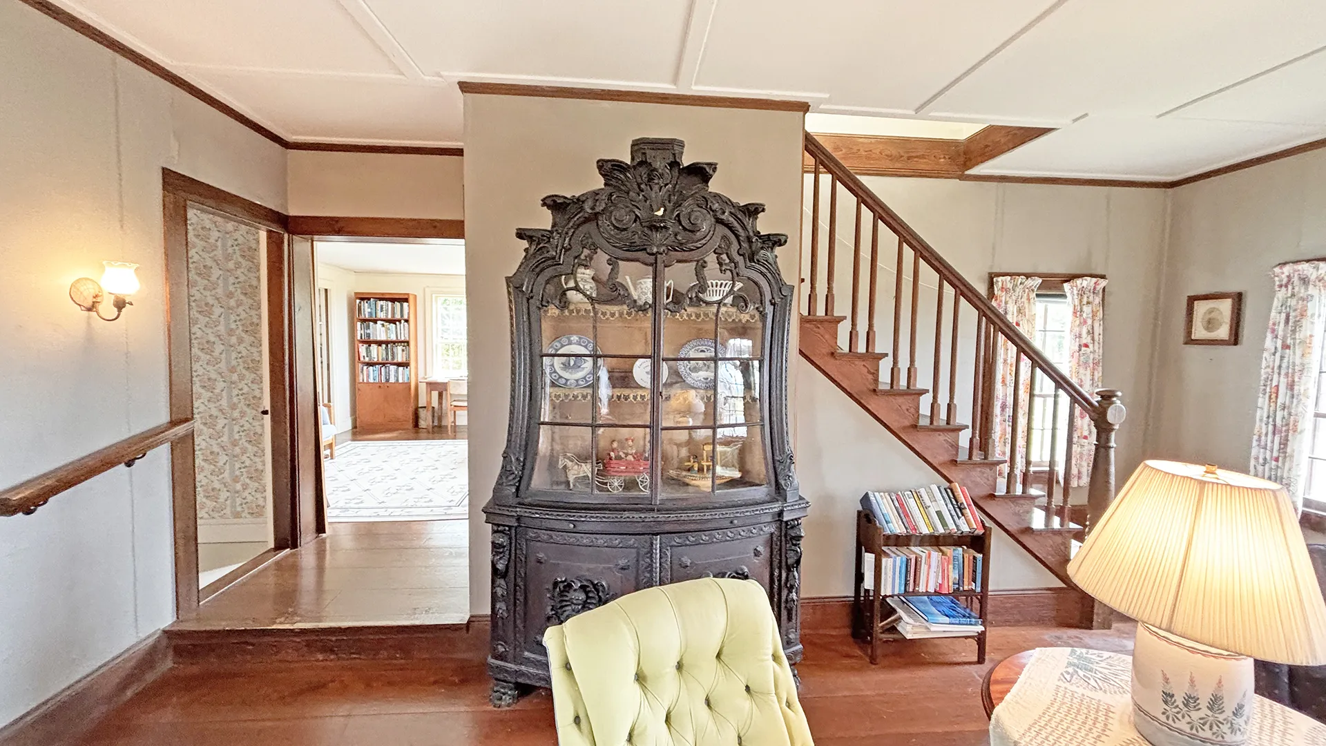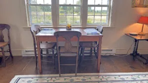 FIRST FLOOR: Living room with mountain views and comfortable seating for six leads to a semi-formal Dining Room with stunning hand-painted, historic mural depicting rural life on Mt. Desert Island. Steps further, a breakfast room serves as a more intimate spot for dining or game play around its small table. Adjacent to the Living Room is a Bedroom with Twin Beds. Off the back entry hall is an updated Full Bath with combined tub and shower. Beyond the Breakfast Room is an updated Kitchen, well-stocked for meal prep. Able to be closed off or left open, the Laundry room, shared with Sunset Farm West, is also found near the Kitchen and serves as the connector between the two residences.SECOND FLOOR: Stairs lead to three Bedrooms, one with a King Bed, one with Double Bed, and one with a Single. These three rooms enjoy mountain views and shared access to a Full Bath with clawfoot tub only.