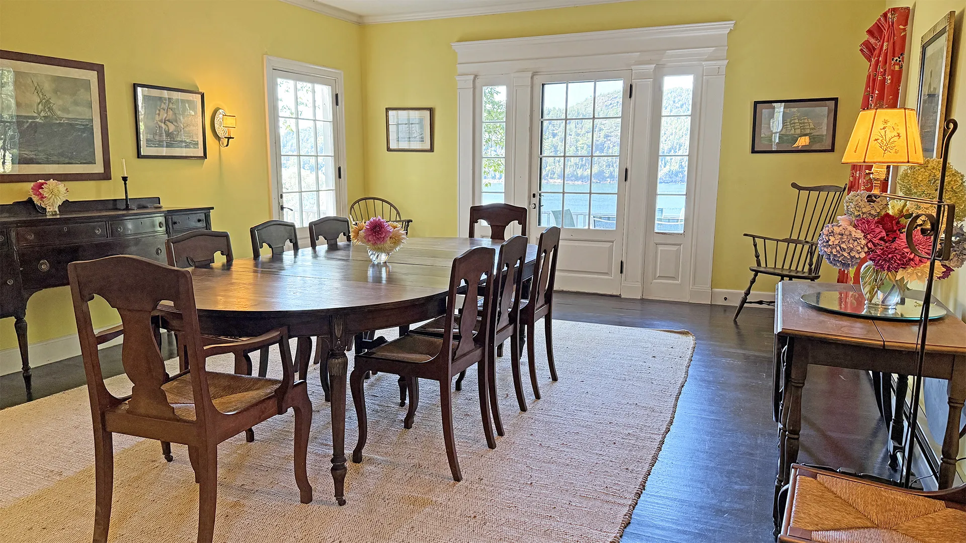 With frontage on Somes Sound, this property offers extraordinary views. Large rooms with many French doors bring the outdoors in. Lounge on the lovely terrace and watch the boating traffic, stroll through the wildflower meadow to the shore, or relax on a sweeping lawn, perfect for summer entertaining. The Northeast Harbor golf course is just across the stre